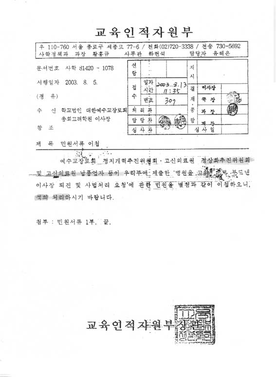 °í½Å±³´ÜÀÇ Àü±ÇÀ» ÀÏÀÓ¹Þ¾Æ Çб³¹ýÀÎ ¹®Á¦¸¦ ó¸®Çϰí Àִ Ưº°´ëÃ¥À§¿øÈ¸(À§¿øÀå °û»ïÂù ¸ñ»ç)°¡ Áö³­ 18ÀÏ ±³À°ÀÎÀûÀÚ¿øºÎ¸¦ ã¾Æ Çö Çб³¹ýÀÎ Àӽà ÀÌ»çÀå ±è¹Î³²¾¾¿¡ ´ëÇÑ ÇØÀÓ °ÇÀǸ¦ Á¤½ÄÀ¸·Î ¿äûÇß´Ù. Ưº°´ëÃ¥À§´Â 1) º´¿øÀ» °íÀÇ·Î ºÎµµ³»°í 2) ȸÀÇ·ÏÀ» Á¶ÀÛ 3) ±³´Ü°úÀÇ ¾à¼Ó°ú ´Þ¸® óÀ½ºÎÅÍ ³¡±îÁö Á¦3ÀÚ Àμö¸¦ ÃßÁøÇÏ´Âµî ¡°´õ ÀÌ»ó Àӽà ÀÌ»çÀåÀ» ¹ÏÁö ¸øÇϰڴ١±¸ç ÀÌ»çÀåÁ÷ »Ó¸¸¾Æ´Ï¶ó ÀÌ»çÁ÷±îÁö ÇØÀÓÅä·Ï ÇÏ´Â ÁøÁ¤¼­¸¦ ±³À°ºÎ¿¡ »óÁ¤Çß´Ù. °í½Å±³´ÜÀÇ ÇØÀÓ°ÇÀÇ¿¡ ´ëÇØ ±³À°ÀÎÀûÀÚ¿øºÎ »çÇÒÁ¤Ã¥°ú ´ã´çÀÚ´Â »çÇÒÁ¤Ã¥°ú ´ã´çÀÚ´Â ¡°Áö±Ý ¾î¶»°Ô ¸»ÇÒ ¼ö ¾øÁö¸¸ ±³´ÜÀÇ ÀÔÀåÀ» Á¸ÁßÇÏ´Â ¼±¿¡¼­ Àû±Ø °ËÅäÇϰڴ١±°í ´äÇÑ °ÍÀ¸·Î ¾Ë·ÁÁ³´Ù.