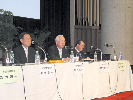 ÀÓÁ÷¼øÀ¸·Î ÁøÇàµÈ Á¤°ß¹ßÇ¥¿¡¼ ¸ÕÀú ÁÖ¸í¼ö ¸ñ»ç(¼øÃµÀº¼º±³È¸)´Â ¡°»çµµÇàÀüÀû ¿øÇü ±³È¸·ÎÀÇ È¸º¹°ú Àå·ÎÁÖÀÇ Á¤Ã¥Á¦µµ ½ÇÇà, ÃÑȸ ±â±¸°³Çõ°ú Á¤ÂøÀ» À§ÇÑ ÈļÓÀû ÀÔ¹ýÁ¶Ä¡¿Í ȯ°æÁ¶¼º, ¿¬±ÝÀ» ºñ·ÔÇÑ Á¤Ã¥ °³¹ßÃßÁøÀ» À§ÇØ Èû¾²°Ú´Ù¡±°í ¹àÇûÀ¸¸ç ÁÖ¿¬µµ ¸ñ»ç´Â ¡°¼º·É°ú ȸ°³¿îµ¿À¸·Î ±³È¸ÀÇ °Å·è¼ºÀ» ȸº¹Çϰí ÀÌ¿ô»ç¶ûÀ¸·Î ¹ÎÁ·°ú ÇÔ²²ÇÏ´Â ±³È¸»óÀ» ¸¸µé¸ç ³²ºÏÅëÀÏÀÇ ÀüµµÀÚ ¿ªÇÒÀÇ ºñ·ÔÇØ ¼¼°è ¼±±³¡¤ÆòÈÀÇ Á߽ɿªÇÒÀ» ÇØ³ª°¥ ¼ö ÀÖµµ·Ï ½É¸íÀ» ´ÙÇØ ºÀ»çÇϰڴ١±°í ¹àÇû´Ù. ÀÌ¾î¼ ¾È¿µ·Î ¸ñ»ç´Â ¡°±³È¸¼ºÀå¿îµ¿¿¡ ½ÉÇ÷À» ±â¿ïÀÌ¸ç ºÏÇѼ±±³¿Í ÅëÀÏ Á¤Ã¥À» ¼ö¸³Çϰí, Çѱ¹±³È¸ÀÏÄ¡¿¬ÇÕ »ç¾÷À» ÀßÇØ ³ª°¡¸ç ±³È¸±³À°°È, ±âµ¶±³ À±¸®Á¤Ã¥À» ¼ö¸³Çϰڴ١±°í ¼Ò°ßÀ» µå·¯³Â´Ù. °ø°³ÁúÀÇ ÀÀ´ä½Ã°£¿¡´Â ¿©·¯ °¡Áö ºÎ¹®¿¡¼ Áú¹®ÀÌ ½ñ¾ÆÁ® ³ª¿Ô´Âµ¥ ¿¬±ÝÀç´Ü ¿î¿ë¿¡ °üÇÑ Áú¹®¿¡´Â ÁÖ¿¬µµ ¸ñ»ç¿Í ¾È¿µ·Î ¸ñ»ç´Â ¡°¿¬±ÝÀç´ÜÀÇ ¹®Á¦¿¡ ´ëÇØ¼´Â Àü¹®ÀεéÀÌ ½ÉµµÀÖ°Ô ¿¬±¸ÇØ¾ß ÇÒ °ÍÀ̸ç Åõ¸íÇÑ ¿î¿µÀÌ ÀÌ·ç¾îÁ®¾ß ÇÑ´Ù¡±°í ´ë´äÇßÀ¸¸ç, ÁÖ¸í¼ö ¸ñ»ç´Â ¡°¿¬±ÝÀç´ÜÀÌ ÇöÀç ÀÚü Á¤°ü¿¡¸¸ ¸Å´Þ·Á ÃÑȸÀÇ °áÀÇ¿¡ µû¸£Áö ¾Ê´Â´Ù¡±¸ç ¡°¸ÕÀú °ü·Ã±ÔÁ¤ÀÌ ÀçÁ¤µÇ¾î °¡ÀÔÀÚÃÑȸ°¡ Àû¹ýÀûÀ¸·Î ´ëÀÀÇÒ ¼ö ÀÖµµ·Ï ÇØ¾ß ÇÑ´Ù¡±°í ´äÇß´Ù. ÀÌ¾î¼ ÃÑȸ¹ýÀÇ 70¼¼ Á¤³âÀ» ½Ã´ëÀÇ È帧¿¡ ¸ÂÃç 65¼¼ Á¤³âÀ¸·Î °¡¾ßÇÏÁö ¾Ê°Ú³Ä´Â Áú¹®¿¡ ¼¼ Èĺ¸ ¸ðµÎ ¡°65¼¼ Á¤³âÀÌ Çö ½Ã´ëÀÇ È帧À̶ó´Â °Í¿¡´Â µ¿ÀÇÇÏÁö¸¸, Èĺ¸ÀÚÀÇ ÀÔÀå¿¡¼ ÃÑȸ¹ý¿¡ ¸í½ÃµÈ »çÇ׿¡ ´ëÇØ ¹«¾î¶ó°í ´äÇϱ⿡´Â °ï¶õÇÏ´Ù¡±´Â ÀÔÀåÀ» ³ªÅ¸³Â´Ù. Ÿ Á¾±³¿¡ ºñÇØ »çȸº¹Áö°¡ ¹ÌÈíÇÏ´Ù´Â Åë°è¿¡ ´ëÇØ ¾î¶»°Ô »ý°¢ÇϳĴ Áú¹®¿¡´Â ÁÖ¸í¼ö ¸ñ»ç¿Í ÁÖ¿¬µµ ¸ñ»ç´Â Á¤ºÎÀÇ »çȸº¹Áö ¿¹»êÀ» Áö¿øÀÇ ·çÆ®¸¦ Àß ¾Æ´Â Àü¹®Àη °³¹ß¿¡ Å« ÁßÁ¡À» µÎ¾ú°í, ¾È¿µ·Î ¸ñ»ç´Â ¡°»çȸ¼±±³¸¦ À§ÇÑ ±³È¸ Á¶Á÷ÀÇ °»½Å°ú ±³È¸½Ã¼³À» »çȸº¹Áö¿¡ Ȱ¿ëÇϰíÀÚ ÇÏ´Â °³ ±³È¸ÀÇ ÀÇÁö°¡ Áß¿äÇÏ´Ù¡±°í ´äº¯Çß´Ù. ³¡À¸·Î ÃÑȸ ±â±¸°³Çõ¹ýÀÇ Åë°ú·Î ³ªÅ¸³ ¡®Á¤Ã¥ÃÑȸ, »ç¾÷³ëȸ¡¯ÀÇ Á¤ÂøÀ» À§ÇÑ ¹æ¾È¿¡ ´ëÇØ¼ ÁÖ¿¬µµ ¸ñ»ç´Â ¡°ÀÌ Á¤Ã¥Àº ½ÉµµÀÖ°Ô Àç Æò°¡µÇ°í º¸¿ÏµÉ Çʿ䰡 ÀÖ´Ù¡±°í ´äº¯Çß°í, ¾È¿µ·Î ¸ñ»ç´Â ¡°ÃÑȸ ÀçÁ¤À» ³ëȸ·Î ºÐ»ê½ÃÄÑ °³ ³ëȸ°¡ »ç¾÷À» Àß ÇØ³ª°¥¼ö ÀÖµµ·Ï ÇØÁÖ¾î¾ß ÇÑ´Ù¡±°í ¸»Çß´Ù. ¶ÇÇÑ ÁÖ¸í¼ö ¸ñ»ç´Â ¡°Áö¿ªÇùÀÇü¸¦ ¸¸µé¾î 60°³ ³ëȸ°¡ ÃÑȸ¿Í °°Àº ½Ã½ºÅÛÀ¸·Î ÀÌ·ç¾îÁ®¾ß ÇÑ´Ù¡±°í ´äº¯Çß´Ù. °æ³²¡¤ºÎ»ê 7°³ ³ëȸÀÇ 80¿©¸í ÃÑ´ë°¡ Âü¼®ÇÑ À̳¯ Á¤°ß¹ßÇ¥´Â ºñ±³Àû ¿ø¸¸ÇÑ È帧À¸·Î ÁøÇàµÆÀ¸¸ç ÅëÇÕ ¸ñ»ç ºÎÃÑȸÀå Á¤°ß¹ßǥȸ´Â ´ÙÀ½´Þ 31ÀÏ Á¦ÁÖÁö¿ªÀ» ³¡À¸·Î ¸¶Ä£´Ù.