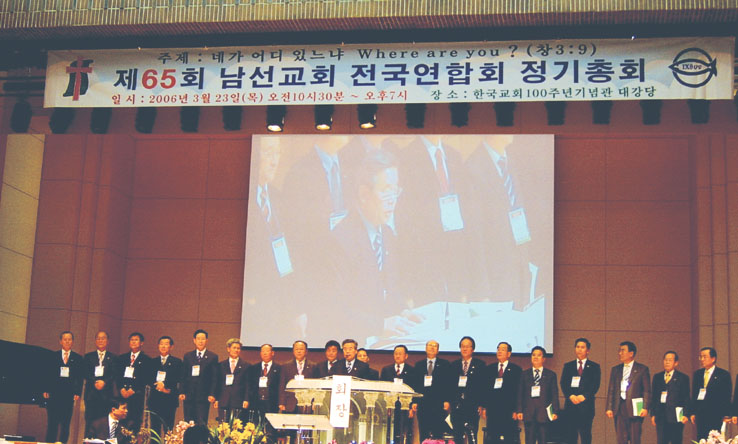 ¿¹Àå ÅëÇÕ ³²¼±±³È¸ Àü±¹¿¬ÇÕȸ Á¦65ȸ ÃÑȸ°¡ 3¿ù 23ÀÏ ¿ÀÈÄ 2½Ã Çѱ¹±³È¸ ¹éÁÖ³â±â³ä°ü¿¡¼ Àü±¹ 64°³ Áöȸ¿¡¼ ´ëÀÇ¿ø 779¸íÁß 707¸íÀÌ Âü¼®ÇÑ °¡¿îµ¥ °³ÃֵƴÙ. ¼ö¼®ºÎȸÀå ÃÖȣö Àå·ÎÀÇ Àεµ·Î °³È¸¿¹¹è¿¡¼´Â Á÷ÀüȸÀå ±è¿ë´ö Àå·ÎÀÇ ±âµµ¿Í ÃÑȸÀå ¾È¿µ·Î ¸ñ»çÀÇ ¡®¿ÀÁ÷ ¿¹¼ö´Ô¸¸ ¹Ù¶óº¾½Ã´Ù¡¯¶ó´Â ¸»¾¸ÀÌ ÀÖ¾ú´Ù. ¼³±³¸¦ ÅëÇØ ¾È ¸ñ»ç´Â ¡°ÃÖ±Ù »çÇйý Àç°³Á¤Àº ¼ø±³¸¦ ÇÏ´õ¶óµµ ÁöÄÑ¾ß ¼º°æ°ú¸ñÀ» °¡¸£Ä¥ ¼ö°¡ ÀÖ´Ù¡±°í ¿ª¼³Çß´Ù. À̳¯ ÇÕµ¿, °í½Å, ±âÀåÃø ³²ÀüµµÈ¸¿¬ÇÕȸ(½Å½Å¿ì Àå·Î, Àå¼øÇü Àå·Î, ±è±âÈ£ Àå·Î)ÀÇ Ãà»ç°¡ ÀÖ¾úÀ¸¸ç, È«Èñõ ȸÀåÀº Àλ縻¿¡¼ ¡°ºÏÇÑ 11°³ ½Ãµµ¿¡ ±³È¸°ÇÃàÀÌ ¼ÓÈ÷ ÀÌ·ç¾îÁú °ÍÀ¸·Î ¹Ï°í ÀÖÀ¸¸ç, À̹ø Æò¾ç ºÀ¼ö±³È¸ °ÇÃàÀ¸·Î ¹«³ÊÁø ±³È¸°¡ Àç°ÇµÇ°í ÀÖ´Ù¡±°í ¸»Çß´Ù. ÇÑÆí, 2ºÎ ȸ¹«¿¡ µé¾î°¡ ÀÓ¿ø¼±°Å¿¡¼´Â ¼±°Å°ü¸® À§¿øÈ¸(À§¿øÀå ±è¿ë´ö Àå·Î)ÀÇ ¼±°Å±ÔÁ¤¿¡ ÀÇÇØ °øÇ庸°í¿¡¼ »õ ȸÀå¿¡ ÃÖȣö Àå·Î(¼¿ï°µ¿, ¾ç¹®±³È¸)¸¦ ¼ö¼®ºÎȸÀå¿¡ À±¿©½Ä Àå·Î(ÀüºÏ, Àü¼º±³È¸)¸¦ °¢°¢ ¼±ÃâÇß´Ù. ȸÀå ÃÖȣö Àå·Î´Â Àλ縻À» ÅëÇØ ¡°Àü±¹ ³²¼±±³È¸ ÇÕâÁ¦¸¦ ½Ç½ÃÇÏ°í °¢Áö¿ª ÇùÀÇȸ¸¦ º»È¸¿¡ Èí¼öÇÏ´Â ¹æ¾ÈÀ» °ËÅäÇϰڴ١±°í ¸»Çß´Ù. À̳¯ »õ·Ó°Ô °³ÆíµÈ ½ÅÀÓÀÓ¿øÀº ´ÙÀ½°ú °°´Ù. ¡â ȸÀå ÃÖȣö Àå·Î(¼¿ï°µ¿, ¾ç¹®±³È¸) ¡â Á÷ÀüȸÀå È«Èñõ Àå·Î(¿ëõ, ⵿¿°±¤±³È¸) ¡â ¼ö¼®ºÎȸÀå À±¿©½Ä Àå·Î(ÀüºÏ, Àü¼º±³È¸) ¡â ºÎȸÀå °ºÏ- Â÷À¯»ó Àå·Î(¼¿ï, ¹®È±³È¸), ½É¿µ½Ä Àå·Î(¼¿ïºÏ, Ÿª±³È¸) °³²- Á¶Á¾¼ö Àå·Î(ÀÎõ, ÀÎõ¼ºÎ), ¹®°ÇÄ¡ Àå·Î(¼¿ï³², °úõ±³È¸) ¿µ³²- ¼Õ±¤ÀÍ Àå·Î(Æ÷Ç×, ±â°èÁß¾Ó), ¹é¿µÁÖ Àå·Î(ºÎ»ê, ±¸´ö±³È¸) ÁߺÎ- ½ÅÁᫎ Àå·Î(ÃæºÏ, »êµ¿±³È¸), ÀÌÈ«ÀÍ Àå·Î(ÆòºÏ, ¿¬½Å±³È¸) È£³²- ¹é°üÂù Àå·Î(¼øÃµ, ±¤¿µ±ÝÈ£±³È¸), À̵¿±Ô Àå·Î(ÀüÁÖ, ¿Ï»ê±³È¸) ¡â Ãѹ« ±è°æ¿õ Àå·Î(¼¿ï°ºÏ, ÀÎⱳȸ) ¡â ¼±â ÃÖ³»È Àå·Î(¼¿ï¼, Ãæ½Å±³È¸) ¡â ºÎ¼±â Á¤ºÏõ Àå·Î(¿µµîÆ÷, ´çÀϱ³È¸) ¡â ȸ·Ï¼±â ¹Ú°è±Õ(¿ëõ, ½Ã¿Â±³È¸) ¡â ºÎȸ·Ï¼±â ¹Ú¼º¾÷ Àå·Î(Æò¾çºÎ»ê, ¾çÁ¤±³È¸) ¡â ȸ°è µµÅÂ±Õ Àå·Î(¼¿ï°³², ÀÓ¸¶´©¿¤) ¡â ºÎȸ°è ³ëº¹Çö Àå·Î(¿©¼ö, ±¤¸²±³È¸) ¡â °¨»ç ÇÔ¸íÈ£ Àå·Î(¼¿ï°ºÏ, ´ö¼ö±³È¸), ¼Õ¹æÈ£ Àå·Î(´ë±¸µ¿, µîÃÌÁ¦Àϱ³È¸), ±è°æ¼· Àå·Î(ÇÔÇØ, ÇѰ±³È¸), ±è¿µÇÑ Áý»ç(±¤ÁÖ, ¼¸²±³È¸)