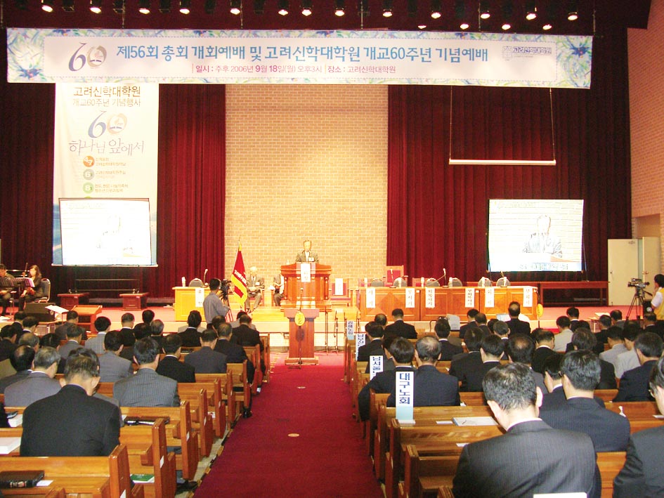 °í½Å Á¦56ȸ Á¤±âÃÑȸ°¡ Áö³ 9¿ù18ÀÏ ¿ÀÈÄ 3½Ã õ¾È°í·Á½ÅÇдëÇпø °´ç¿¡¼ ¼º´ëÈ÷ °ÅÇàµÆ´Ù. Á¦56ȸ ÃÑȸ °³È¸ ¿¹¹è ¹× ½Å´ë¿ø °³±³ 60Áֳ⠱â³ä¿¹¹è·Î ÇÔ²² °ÅÇàµÈ À̳¯ ¿¹¹è´Â ÃÑȸÀå ÀÌÇѼ® ¸ñ»ç(¼ö¿µ±³È¸)ÀÇ ±³È¸ ¹®Á¦·Î ÀÎÇØ ºÎÃÑȸÀå ±Ç¿ÀÁ¤ ¸ñ»ç°¡ °³È¸¿¹¹è »çȸ¸¦ ÁøÇàÇß°í, ºÎÃÑȸÀå À̿켺 Àå·ÎÀÇ ±âµµ°¡ ÀÖ¾ú´Ù. ¡®ºñÁ¯ 56! ¿Á¶ÀÇ À¯¾÷À» ȸº¹ÇÏÀÚ¡¯¶ó´Â ÁÖÁ¦·Î ¸»¾¸À» ÀüÇÑ ÀÌ±Ù»ï ¹Ú»ç´Â ¡°°í·ÁÆÄ°¡ ÁÖ´ÔÀÇ ÀºÇý¸¦ ¸¹ÀÌ ¹ÞÀº ¸¸Å, Çϳª´Ô ¾Õ¿¡¼ ¼ÖÁ÷Çϰí Áø½ÇµÇ°Ô »ìÀÚ¡±¸ç ½Å¾ÓÀÇ ¼ø°áÀ» °Á¶Çß´Ù.