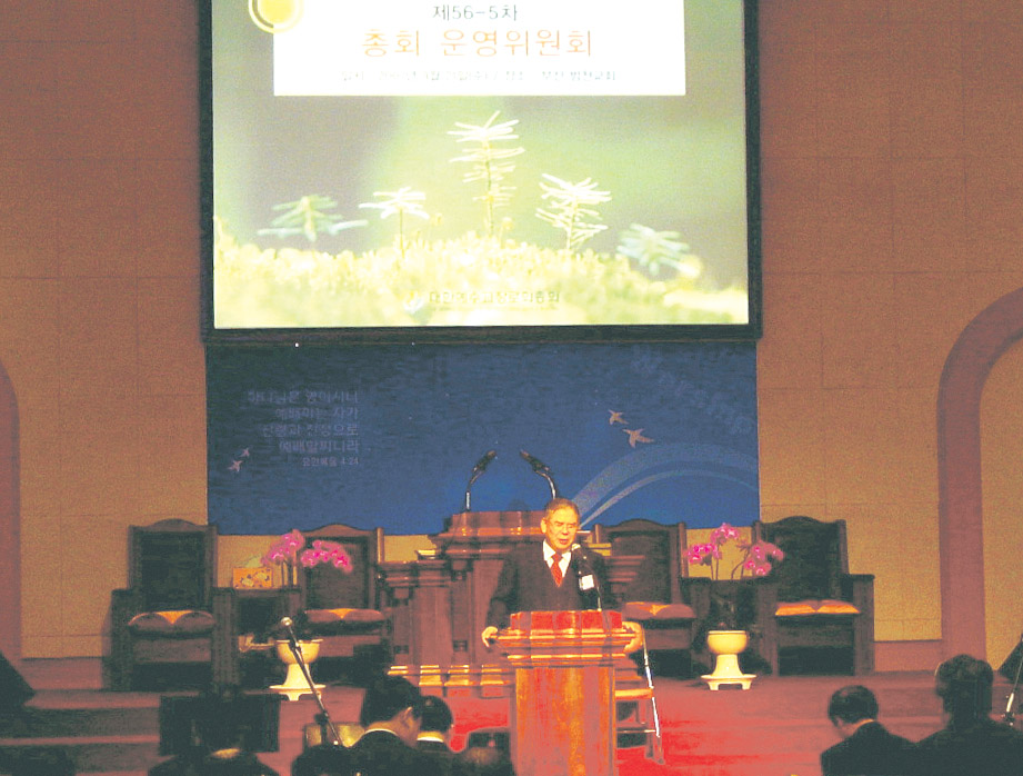 | °í½ÅÃÑȸÀå ±Ç¿ÀÁ¤ ¸ñ»ç°¡ ¹üõ±³È¸¿¡¼ ÃÑȸ¿î¿µÀÌ»çȸ¿Í °æ°Çȸ¸¦ ÀεµÇÏ´Â Àå¸é |