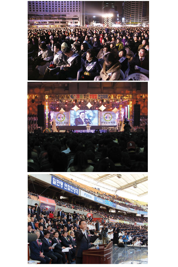 ÀÌÈÄ Æ¯º° ±âµµ½Ã°£¿¡´Â ¡®¾î¸°ÀÌ º¹À½È¿Í ¹Ì·¡¸¦ À§ÇÏ¿©¡®(±èÀ¯Áø ¾î¸°ÀÌ), ¡®Çпø ¹× û³â º¹À½È¸¦ À§ÇÏ¿©¡®(ÀåÀçâ Çлý), ¡®³²ºÏÆòÈÅëÀÏ ¹× ±¹°¡ÀÇ °æÁ¦¹ßÀüÀ» À§ÇÏ¿©¡®(À̺´Âù Àå·Î), ¡®´ë±¸°æºÏ, ´ë±¸½ÃÁ¤°ú 2011³â ¼¼°èÀ°»ó¼±¼ö±Ç´ëȸ ¼º°ø°³ÃÖ¸¦ À§ÇÏ¿©¡®(Ȳ¿µ´ë ¸ñ»ç)µîÀÇ Á¦¸ñÀ¸·Î ±âµµÇß´Ù. ´ë±¸Áö¿ª ºÎȰÀý¿¬ÇÕ¿¹¹è¿¡´Â ´ë±¸Áö¿ª ¼ºµµ ¾à 3¸¸¸íÀÌ Ã·¼®Çß´Ù.