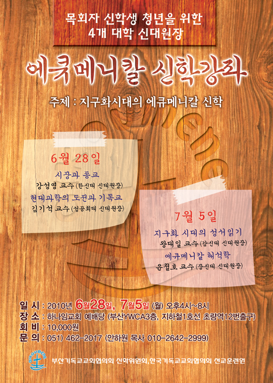 6¿ù 28ÀÏ¿¡´Â ¡®½ÃÀå°ú Á¾±³¡®(°¼º¿µ ±³¼ö, ÇÑ½Å´ë ½Å´ë¿øÀå)¿Í ¡®Çö´ë°úÇÐÀÇ µµÀü°ú ±âµ¶±³¡®(±è±â¼® ±³¼ö, ¼º°øÈ¸´ë ½Å´ë¿øÀå)¶ó´Â ÁÖÁ¦·Î, 7¿ù 5ÀÏ¿¡´Â ¡®Áö±¸È ½Ã´ëÀÇ ¼º¼Àб⡮(¿Õ´ëÀÏ ±³¼ö, °¨½Å´ë ½Å´ë¿øÀå), ¡®¿¡Å¥¸Þ´ÏÄ® ÇØ¼®ÇС®(À±Ã¶È£ ±³¼ö, Àå½Å´ë ½Å´ë¿øÀå)¶ó´Â ÁÖÁ¦·Î °¢°¢ ¿¸°´Ù.