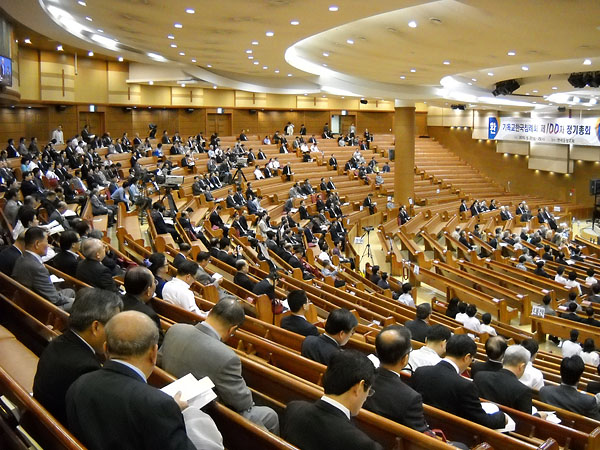 ±âµ¶±³Çѱ¹Ä§·Êȸ´Â 9¿ù 27ÀÏ(¿ù)ºÎÅÍ 29ÀÏ(¼ö)±îÁö ¼­¿ï ¿¬¼¼Áß¾Ó±³È¸(À±¼®Àü ¸ñ»ç)¿¡¼­ Á¦100Â÷ ÃÑȸ¸¦ °³ÃÖÇß´Ù. À̳¯ °³È¸¿¹¹è´Â Á÷Àü ÃÑȸÀå ÇѱԵ¿ ¸ñ»ç°¡ ¡®³» ÀÜÀÌ ³ÑÄ¡³ªÀÌ´Ù¡¯¶ó´Â Á¦¸ñÀ¸·Î ¼³±³Çß°í, ÃÑȸÀå ³²È£ ¸ñ»ç°¡ Àλ縻À» ÀüÇß´Ù. ƯÈ÷ À̳¯ °³È¸½Ä¿¡´Â 100Â÷ ÃÑȸ¸¦ ¸Â¾Æ Çѱ¹¿¡¼­ ¼±±³ Ȱµ¿À» ÇÏ´Ù ÀºÅðÇÑ ¹Ì±¹ ³²Ä§·Êȸ Çѱ¹ ÆÄ¼Û ¼±±³»ç ºÎºÎ¸¦ ÃÊÃ»ÇØ °ø·ÎÆÐ¸¦ Àü´ÞÇß´Ù.