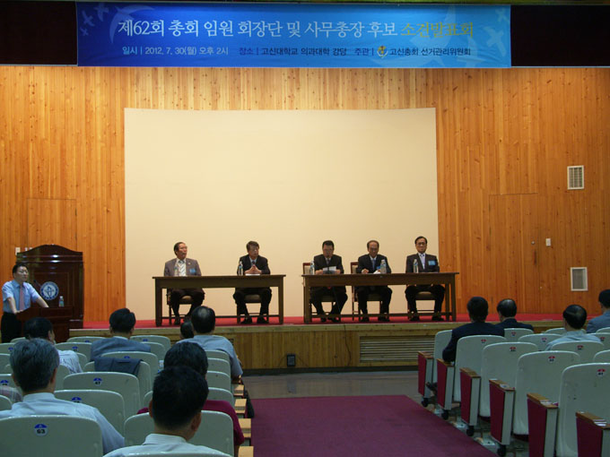 °í½ÅÃÑȸ ¼±°Å°ü¸®À§¿øÈ¸(À§¿øÀå Á¤¼ö»ý ¸ñ»ç)°¡ ÁÖÃÖÇÏ´Â Á¦62ȸ ÃÑȸ ÀÓ¿ø ȸÀå´Ü ¹× »ç¹«ÃÑÀå Èĺ¸ ¼Ò°ß ¹ßǥȸ°¡ Áö³ 7¿ù 30ÀÏ(¿ù) ¼Ûµµ Àǰú´ëÇÐ °´ç¿¡¼ °³ÃֵƴÙ.