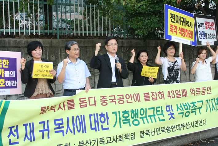 ºÎ»ê±âµ¶±³»çȸåÀÓ°ú Å»ºÏ³¹ÎºÏ¼Û¹Ý´ë ºÎ»ê½Ã¹Î¿¬´ë´Â Áö³ 8¿ù 21ÀÏ(È) ¿ÀÀü 10½Ã ÇØ¿î´ë±¸ Áß±¹¿µ»ç°ü ¾Õ¿¡¼ ¡®ÀüÀç±Í ¸ñ»ç ºÒ¹ý ±¸±Ý ±Ôź ¹× ¼®¹æ Ã˱¸ ½ÃÀ§¡¯¸¦ ¹ú¿´´Ù.