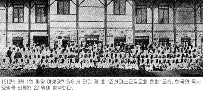 1912³â 9¿ù 1ÀÏ Æò¾ç ¿©¼º°æÇпø. 7°³ ³ëȸ¿¡¼ ÆÄ¼ÛµÈ ¸ñ»ç 52¸í, ¼±±³»ç 44¸í, Àå·Î 125¸í, ¸ðµÎ 221¸íÀÌ ¸ð¿© Á¶¼±¿¹¼ö±³Àå·Îȸ Á¦1ȸ ÃÑȸ°¡ °³ÃֵȴÙ. ±×·ÎºÎÅÍ 100³âÀÌ Èê·¶´Ù. 2012³â ÇöÀç Çѱ¹ Àå·Î±³ ÃÑȸ 100ÁÖ³âÀ» ±â³äÇØ °¢ ±³´Üº°·Î 100ÁÖ³â Çà»ç°¡ ÁøÇàµÇ°í ÀÖ´Ù.