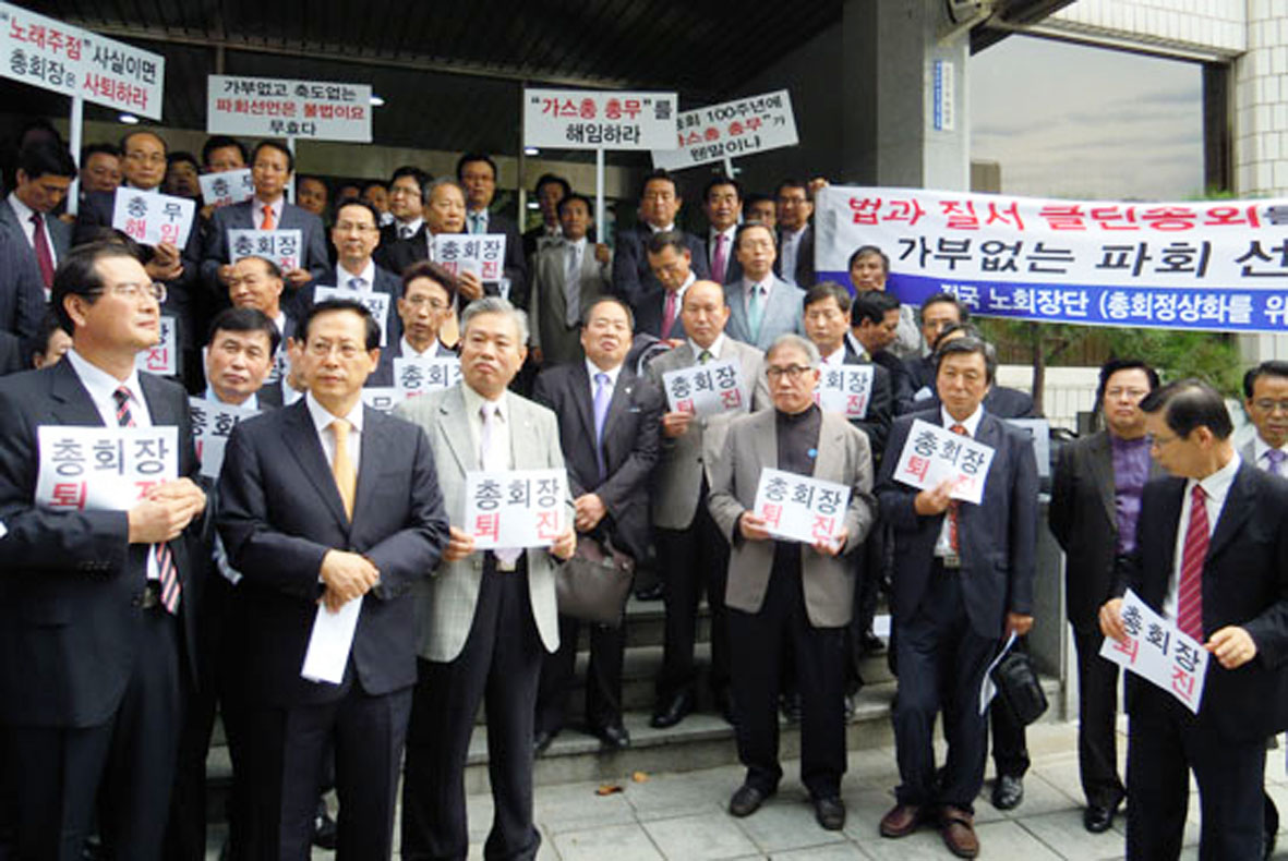 ºñ´ëÀ§´Â °¡ºÎ¾ø´Â ÆÄȸ¼±¾ðÀº ¹«È¿ÀÎ °Í°ú Á¤Áظð ÃÑȸÀå¿¡ ´ëÇÑ ºÒ½ÅÀÓ, Ȳ±Ôö Ãѹ« ÅðÀÓÀ» ÁÖÀåÇϰí ÀÖ´Ù. ÇÑÆí ÃëÀÓ °¨»ç¿¹¹è ÈÄ ÁøÇàµÈ ±âÀÚȸ°ß¿¡¼­ Á¤Áظð ÃÑȸÀåÀº ¡°ºñ´ëÀ§°¡ 8¹é¸íÀ̵ç, õ¸íÀ̵ç, ¸¸¸íÀÌµç °ü°è¾ø´Ù. Á¶±Ý ÀÖÀ¸¸é °ð ¾ø¾îÁø´Ù. ±³´Ü ÃÑȸ¿¡ 5¸¸¸íÀÇ ¸ñȸÀÚ°¡ ÀÖ´Ù¡±°í ¸»Çß´Ù. ÀÌÈÄ º¸µµ¸¦ Á¢ÇÑ ºñ´ëÀ§´Â ¡°ºñ´ëÀ§¸¦ Áö¿øÇÏ´Â »ç¶÷ÀÌ ¸¹´Ù¡±°í ´äÇØ ÀÌÈÄ ÃÑȸÀåÀ» À§½ÃÇÑ ÀÓ¿øµé°ú ºñ´ëÀ§ °£ÀÇ Çຸ¿¡ ±ÍÃß°¡ ÁÖ¸ñµÈ´Ù.