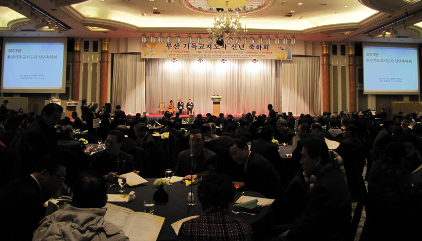Áö³­ 1¿ù 7ÀÏ(¿ù) ¿ÀÈÄ 6½Ã ¼­¸é ·Ôµ¥È£ÅÚ 3Ãþ Å©¸®½ºÅ»º¼·ë¿¡¼­´Â ºÎ»ê±âµ¶±³ÃÑ¿¬ÇÕȸ ÁÖÃÖ·Î ¡®2013³â ºÎ»ê±âµ¶±³ ÁöµµÀÚ ½Å³âÃàÇÏȸ¡¯°¡ ¿­·È´Ù. 400¿©¸í ÀÌ»óÀÌ Âü¼®ÇÑ À̳¯ Çà»ç¿¡¼­´Â ºÎ»ê±³°è¸¦ ´ëÇ¥ÇÏ´Â ¿¬ÇÕ±â°ü, ´Üü µîÀÇ ÁöµµÀÚµéÀÌ ¸ð¿© ¼­·Î¸¦ ÃູÇÏ´Â ½Ã°£À» °¡Á³´Ù.
