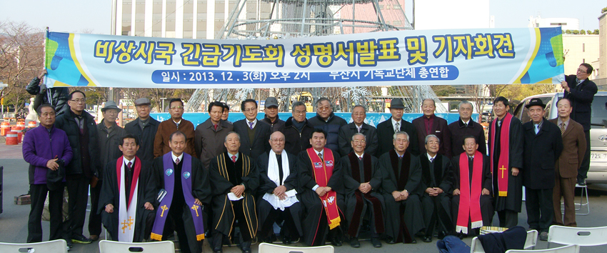ºÎ»ê±âµ¶±³ÃÑ¿¬ÇÕȸ Áõ°æÈ¸Àå´ÜÀÌ Áö³­ 12¿ù 3ÀÏ(È­) ºÎ»ê¿ª ±¤Àå¿¡¼­ ºñ»ó½Ã±¹ ±ä±Þ±âµµÈ¸¸¦ °®°í Á¤Àï Áߴܰú ±¹¹Î ´ëÅëÇÕÀ» È£¼ÒÇß´Ù.