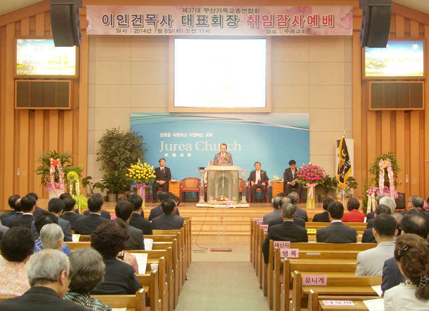 ºÎ»ê±âµ¶±³ÃÑ¿¬ÇÕȸ Á¦37´ë ÀÌÀ롂 ´ëǥȸÀå ÃëÀÓ½ÄÀÌ Áö³ 7¿ù 8ÀÏ Áַʱ³È¸¿¡¼ °³ÃֵƴÙ. ±³°èÁöµµÀÚ ¹× Á¤Ä¡Àΰú ±â°üÀåµéÀÌ Âü¼®ÇÑ °¡¿îµ¥, 1ºÎ ¿¹¹è¿¡¼´Â ºÎ»ê¼º½Ãȿº»ºÎ ÃÖÈ«ÁØ ¸ñ»çÀÇ ¡®ÆÄ¼ÛµÈ ±×¸®½ºµµÀÇ Á¦ÀÚ¡¯¶ó´Â Á¦¸ñÀÇ ¸»¾¸ÀÌ ÀÖ¾ú´Ù. ÃÖ ¸ñ»ç´Â ¡°ÀÌÀ롂 ´ëǥȸÀåÀÌ ¼Ò½Å²¯ ÀÏÇÒ ¼ö ÀÖµµ·Ï ±³È¸¿Í ±³°èÁöµµÀÚµéÀÌ ±âµµ¿Í Çå½ÅÀ» ´ÙÇÏÀÚ¡±°í °Á¶Çß´Ù.