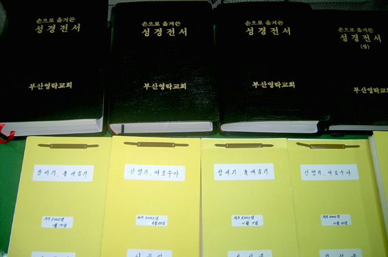 ºÎ»ê ¿µ¶ô±³È¸´Â Æò¼Ò ±³ÀεéÀÌ ¼º°æÇʻ縦 ÇÏ´Â °ÍÀÌ ÀϹÝÈ­µÇ¾î ÀÖ¾î À̵éÀÇ Çʻ纻À» Ã¥À¸·Î Á¦º»ÇÏ´Â °ÍÀÌ Á¤ÂøµÇ¾î ÀÖ´Ù. ÇÏÁö¸¸ Á˼öµé¿¡°ÔÀÇ ¼º°æ ÇÊ»ç Á¢¸ñ°ú Ã¥Á¦º»Àº óÀ½À¸·Î, ºÎ»ê ¿µ¶ô±³È¸ À¯Ä¡ÀåÀüµµÀ§¿øÈ¸¸¦ ÅëÇØ ÇöÀç 7¸íÀÇ Á˼öµéÀÇ ¼º°æÇʻ纻ÀÌ ¿Ï¼ºµÇ¾î ½Å±¸¾à ¼º°æÃ¥À¸·Î Á¦º»µÈ »óÅÂÀ̰í, 15¸íÀÇ Á˼öµéÀÌ ¼º°æÇʻ縦 Çϰí ÀÖ¾î °è¼ÓÇØ¼­ ±× ¼ö´Â ´Ã¾î³¯ °ÍÀ¸·Î º¸ÀδÙ.