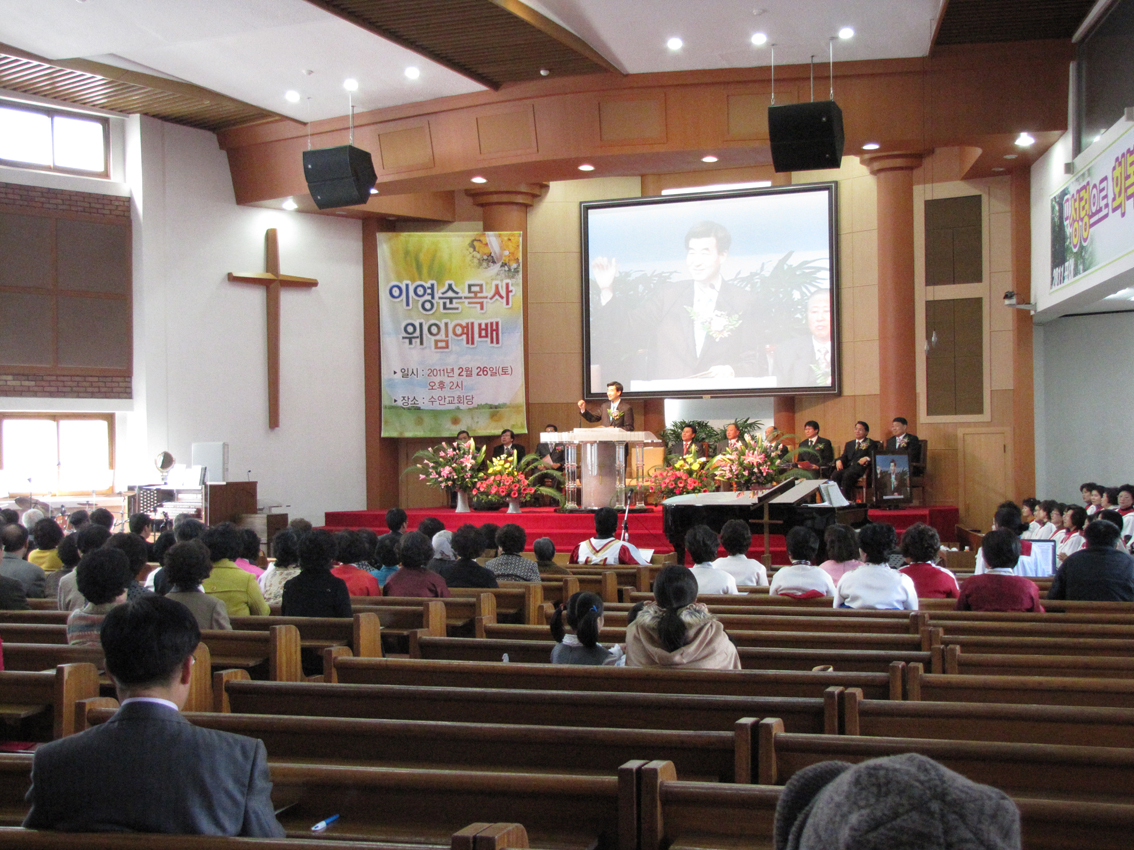| ¡ã Áö³´Þ 2¿ù 26ÀÏ ¿ÀÈÄ 2½Ã ¼ö¾È±³È¸¿¡¼ ÀÌ¿µ¼ø ¸ñ»ç À§ÀÓ½Ä ¿¹¹è´Â ½ä··ÇÑ ¸ð½ÀÀ̾ú´Ù. |