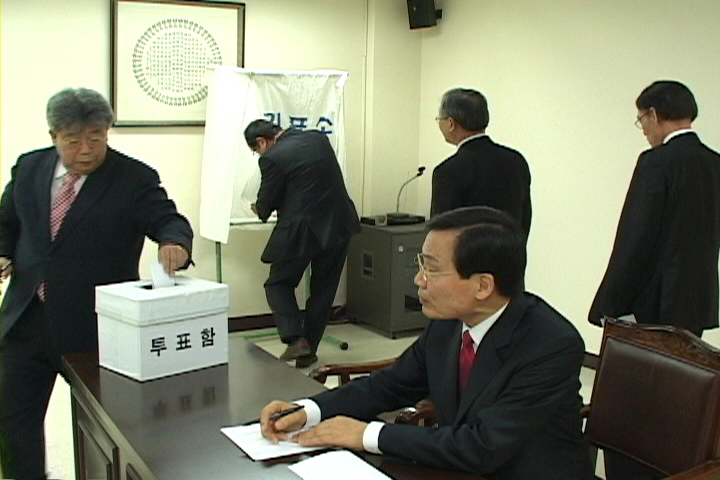 1Â÷ ÅõÇ¥¿¡¼´Â ½Å»óÇö ¸ñ»ç°¡ 4Ç¥, ¿À¼¼Ã¢ Àå·Î°¡ 3Ç¥, ÃÖ°èÈ£ Àå·Î 2Ç¥, ±èÁ¤ÀÏ Àå·Î 1Ç¥¸¦ °¢°¢ ¾ò¾ú°í, 2Â÷ ÅõÇ¥¿¡¼´Â ½Å»óÇö ¸ñ»ç 5Ç¥, ¿À¼¼Ã¢ Àå·Î 3Ç¥, ÃÖ°èÈ£ Àå·Î, ±èÁ¤ÀÏ Àå·Î °¢°¢ 1Ç¥¸¦ ¾ò¾î, »õ ÀÌ»çÀå ¼±ÀÓÀ» ±â´ëÄÉ Çß´Ù. ÇÏÁö¸¸ ¸¶Áö¸· 3Â÷ ÅõÇ¥¿¡¼ ½Å»óÇö ¸ñ»ç°¡ 5Ç¥, ¿À¼¼Ã¢ Àå·Î 4Ç¥, ÃÖ°èÈ£ ÀÌ»ç 1Ç¥¸¦ ¾ò¾î, À̳¯ ÀÌ»çÀå ¼±Ãâ¿¡ ½ÇÆÐÇß´Ù.
