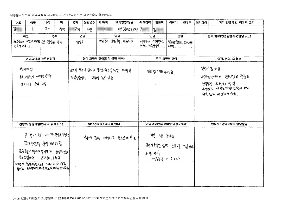 °è´ëÁö¿ªÀº °è¸í´ë¸¦ °¡¸£Å°´Â Àº¾î·Î ÆÄ¾ÇµÈ´Ù. ½ÇÁ¦ ½ÅõÁö º¸¾È¹®¼¸¦ »ìÆìºÁµµ °è¸í´ë ƯÁ¤Çаú¸¦ ÁöĪÇϰí ÀÖ°í, ³ªÀÌ´ëµµ 19¼¼¿¡¼ 20´ë Áß¹ÝÀÌ ´ëºÎºÐÀÌ¶ó¼ ´ëÇлýµé·Î ÃßÁ¤µÈ´Ù. À۳⸻(2Çбâ) À̵éÀÌ Æ÷¼·ÇÑ ´ë»óÀÚ´Â ÃÑ 172¸íÀ¸·Î, ÀεµÀÚ, ´ë»óÀÚ, ¼ºº°, ³ªÀÌ, Ãâ¼®ÇÏ´Â ±³È¸, ¿¬¶ôó, ¸¸³²³¯Â¥ µîÀÌ ±â·ÏµÅ ÀÖ´Ù. 172¸í Àü¿øÀÌ ½ÅõÁö¿¡ Æ÷¼·µÇ¾ú´ÂÁö ¾Ë ¼ö ¾øÁö¸¸, À̵éÁß ´Ù¼ö°¡ ½ÅõÁö¿¡ Æ÷¼·µÅ ÇöÀç ¶Ç´Ù¸¥ Æ÷¼·´ë»óÀÚ¸¦ ¹°»öÇϰí ÀÖ´Â °ÍÀ¸·Î ¾Ë·ÁÁ³´Ù.