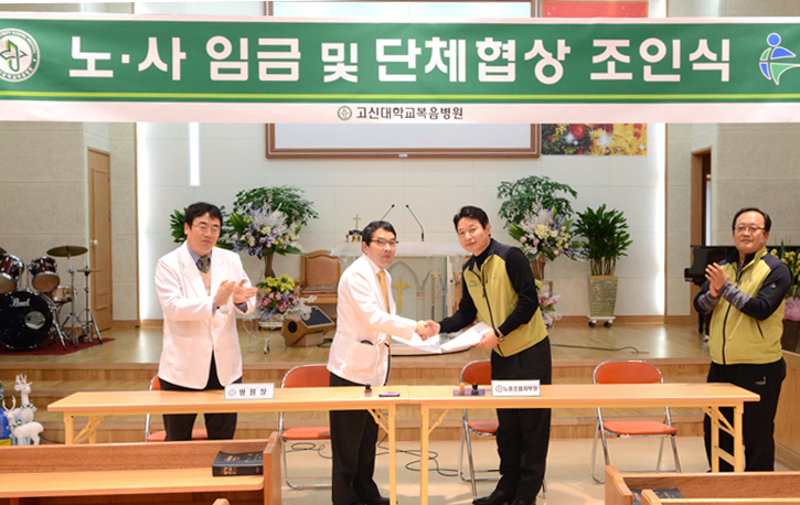 ÀÌ»ó¿í º´¿øÀåÀº ¡°³»³â ÀÇ·á ȯ°æÀÌ ³ª»Ú´Ù. ¿©±â¿¡ ´ëÇÑ ³ëÁ¶ ÁýÇàºÎÀÇ °á´ÜÀÌ ÀÖ¾ú°í °á°úÀûÀ¸·Î ÀÓ´ÜÇùÀ» ²ø¾î³»´Âµ¥ ¼º°øÇß´Ù. (³ëÁ¶)ÁýÇàºÎ¿¡ °¨»çÇÏ´Ù¡°°í ¸»Çß´Ù. ÀÌ º´¿øÀåÀº ¡°Ã³À½ ³ëÁ¶°¡ ÀÓ±ÝÇù»ó¿¡¼ 8.17% ÀλóÀ» ¿ä±¸Çß´Ù. º´¿ø »óȲ°ú ³»³â ÀÇ·áȯ°æ, Ÿ º´¿øÀÇ ÀÓ´ÜÇù °á°ú¸¦ ¼³¸íÇß°í, ³ëÁ¶°¡ ´ëÆø ¾çº¸ÇÏ¿© 3%¿¡ ÇÕÀǸ¦ À̲ø ¼ö ÀÖ¾ú´Ù. ÇÔ²² °¡¾ßÇÑ´Ù´Â °ø°¨´ë°¡ ÀÖ¾ú±â¿¡ °¡´ÉÇß´Ù°í º»´Ù¡°°í ¸»Çß´Ù. ¶Ç ¡°º´¿øÀÌ 2002³â ÆÄ¾÷ ÈÄ Áö±Ý¿¡ À̸£±â ±îÁö Á÷¿øµéÀÇ Èñ»ýÀÌ ¸¹¾Ò´Ù. Áö³ 10³â°£ Ÿ º´¿ø¿¡ ºñÇØ ÀÓ±Ý ÀÎ»óµµ ³·´Ù. ±×·± Çå½Å°ú Èñ»ýÀÌ ÀÖ¾ú±â ¶§¹®¿¡ º¹À½º´¿øÀÌ Á¸ÀçÇÑ´Ù°í »ý°¢ÇÑ´Ù¡°¸ç Á÷¿øµé¿¡°Ô ´Ù½Ã Çѹø °¨»çÀÇ ¸»À» ÀüÇß´Ù.