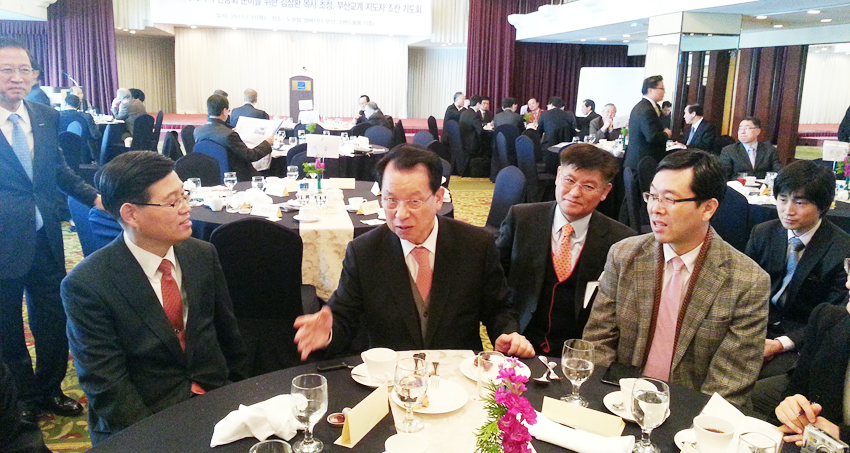 Áö³ 31ÀÏ(¸ñ) ±è»ïȯ ¸ñ»ç°¡ ºÎ»ê ±³°è ÀλçµéÀ» ÃÊÃ»ÇØ Á¶Âù±âµµÈ¸¸¦ ¿¾ú´Ù. ±³°è±âÀÚµé°ú ÇÔ²² ÇÑ ÀÚ¸®¿¡¼ ºÎ»êÀÇ º¸¼ö ±³´ÜÀÎ ÇÕµ¿¡¤°í½Å ¸ñȸÀÚ ¹× ºê´Ï¿¤ ±³´Ü ¹Ú¼º±â ¸ñ»ç¿Í ºÎ»ê ±³°è ¾î¸¥µéÀ» ã¾Æ ºË°Ú´Ù´Â Àǻ縦 Ç¥½ÃÇß´Ù. ±×¸®°í ºÎ»ê½Ã ¿¹»êÀ¸·Î Áö¿ø¹ÞÀº 4¾ï¿øµµ ºÎ»êÁغñÀ§·Î µ¹·Á ÈûÀ» ½Ç¾î ÁÖ°Ú´Ù´Â ¾à¼Óµµ Çß´Ù. /ÆíÁýÀÚ ÁÖ