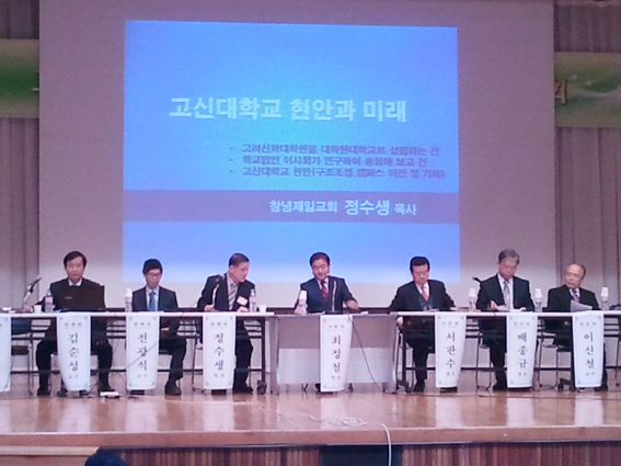 °í½Å´ëÇб³ Çö¾È ±Øº¹ ¹æ¾È ¸¶·ÃÀ» À§ÇÑ °øÃ»È¸°¡ 12¿ù 17ÀÏ(È) ´ë±¸ µ¿Àϱ³È¸¿¡¼ °³ÃֵƴÙ. À̹ø °øÃ»È¸´Â ¿ÀÈÄ 1½ÃºÎÅÍ ÃÑ 4½Ã°£¿¡ °ÉÃÄ ¿¶í Åä·Ð µîÀÌ À̾îÁ³´Ù. 100¿© ¸íÀÇ Àü±¹ ³ëȸ ÀÓ¿ø, ÃÑȸÀÓ¿ø, Çб³¹ýÀÎ ÀÌ»ç, °í½Å´ëÇб³, º¹À½º´¿ø, °í·Á½ÅÇдëÇпø °ü°èÀÚµéÀÌ Âü¼®Çß´Ù. À̹ø °øÃ»È¸ÀÇ ÇÙ½ÉÀº °í½Å´ëÇб³ Çö¾È ±Øº¹ ¸¶·ÃÀ» À§ÇÑ °øÃ»È¸¿´Áö¸¸ Âü°¡ÀÚµé ¸¶´Ù ÀǰßÀº ´Ù¾çÇß´Ù. Á¤¼ö»ý ¸ñ»ç(â³çÁ¦Àϱ³È¸)´Â °í·Á½ÅÇдëÇпøÀ» ´ëÇпø´ëÇб³·Î ÀüȯÇÏÀÚ°í ÁÖÀåÇß°í, Çб³¹ýÀÎ ÀÌ»çȸ°¡ ¿¬±¸ÇÏ¿© ÃÑȸ¿¡ º¸°íÇϱâ·Î ÇÑ °í½Å´ëÇб³ Çö¾È(±¸Á¶Á¶Á¤, Ä·ÆÛ½º ÀÌÀü ¹®Á¦ µî)µîÀÌ ¹ßÇ¥µÆ´Ù.