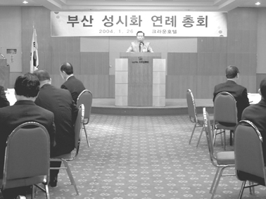ºÎ»ê¼º½ÃÈ­ ¿îµ¿º»ºÎ(º»ºÎÀå Á¤Çʵµ ¸ñ»ç)´Â Áö³­ 1¿ù 26ÀÏ(¿ù) Å©¶ó¿îÈ£ÅÚ¿¡¼­ ¿¬·ÊÃÑȸ¸¦ °¡Á³´Ù. »ç¹«ÃÑÀå Ȳ¼º¹Î ¸ñ»çÀÇ »çȸ·Î ÁøÇàµÈ 1ºÎ ¿¹¹è¿¡¼­´Â Á¤Çʵµ ¸ñ»ç°¡ ¸»¾¸À» ÅëÇØ ¡°2004³â¿¡µµ ºÎ»ê ¼º½ÃÈ­¿¡ Èû¾µ °Í¡±À» ´çºÎÇϸç, ¡°¼Ò¼ö¶óµµ ¼º·ÉÃæ¸¸ÇÏ¸é ºÎ»êÀÌ ¼º½ÃÈ­ µÇ¸®¶ó ¹Ï´Â´Ù¡±°í ¸»Çß´Ù.
