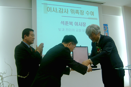 ±³À°±¹ Ãѹ« ±è¿µÁÖ ¸ñ»ç¿¡°Ô ÀÓ¸íÆÐ¸¦ ¹Þ°í ÀÖ´Â ¹ÚºÀ±Ô °üÀå