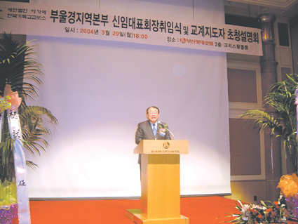 À̾îÁø ÃëÀÓ½Ä ¹× ¼³¸íȸ´Â ÃÖÂù±â Àå·Î(¾Æ°¡ÆäºÎ¿ï°æ »ç¹«ÃÑÀå)ÀÇ »çȸ·Î ½ÅÁÖº¹ Àå·Î°¡ °æ°úº¸°í¸¦, ¾çÀÎÆò Àå·Î°¡ °Ý·Á»ç¿Í ¼³¸³¹è°æÀ», Ȳ±³¾È º»ºÎÀåÀÌ ±âµ¶±³±³µµ¼ÒÃßÁø¹æÇâÀ», ¿À°Åµ· ºÎ»ê½Ã½ÃÀå±ÇÇÑ´ëÇàÀÌ Ãà»ç¸¦ ÀüÇß´Ù.