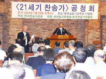 ¡®21¼¼±â Âù¼Û°¡ °øÃ»È¸¡¯°¡ Áö³­ 7¿ù 29ÀÏ(¸ñ) Çѱ¹±³È¸ 100Áֳ⠱â³ä°ü ¼Ò°­´ç¿¡¼­ ¿­·È´Ù. À̳¯Àº Âù¼Û°¡ °øÈ¸°¡ Áö³­ 3³â µ¿¾È Àç°ËÅäÇØ ³» ³õÀº Âù¼Û°¡ ½ÃÁ¦Ç°À» °¡Áö°í °øÃ»È¸¸¦ °¡Áö´Â ÀÚ¸®·Î, 200¿©¸íÀÌ Âü¼®ÇØ ¿­¶í Åä·ÐÀ» ¹ú¿´´Ù.