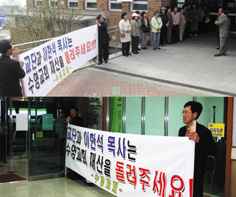 Áö³­ 7ÀÏ °í½ÅÃÑȸ¿î¿µÀ§¿øÈ¸°¡ ¿­¸° ¼ÛµµÁ¦Àϱ³È¸´ç(ÁÖÁØÅ ¸ñ»ç)°ú 11ÀÏ ³²ºÎ»ê Á¤±â³ëȸ°¡ ¿­¸° ±âÀ屳ȸ(ÃÖ¸í½Ä ¸ñ»ç)¿¡¼­µµ ¹ßÀüÀ§ °ü°èÀÚ¿Í ¼ö¿µ±³È¸ Áý»çµé ¼ö½Ê¸í ¸ô·Á¿Í ÀÌÇѼ® ¸ñ»çÀÇ ¿ëÅ𸦠ÁÖÀåÇß¾ú´Ù. À̵éÀº ¡®±³´Ü°ú ÀÌÇѼ® ¸ñ»ç´Â ¼ö¿µ±³È¸ Àç»êÀ» µ¹·ÁÁÖ¼¼¿ä!¡®¶ó´Â Çö¼ö¸·°ú °¢Á¾ À¯Àι°(¼º¸í¼­, À§Á¶µÈ °øµ¿ÀÇȸ »çº», À¯ÁöÀç´Ü¿¡ º¸³½ ³»¿ëÁõ¸í, ÀÌÇѼ® ¸ñ»çÀÇ °¢¼­µî)µîÀ» ¹èÆ÷Çϸç ÀÌ ¸ñ»ç »çÅ𸦠À§ÇÑ ÃÑ·ÂÅõÀï¿¡ ³ª¼­°í ÀÖ´Ù.