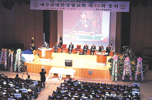 Á¦84ȸ ¿¹¼ö±³´ëÇѼº°á±³È¸ ÃÑȸ°¡ Áö³ 4¿ù 25ÀÏ ¾È¾ç¼º°á´ëÇб³ ¿¹¼º 80Áֳ⠱â³ä°ü¿¡¼ ¡®100ÁÖ³âÀ» ÇâÇØ ÇÔ²² °©½Ã´Ù¡®¶ó´Â ÁÖÁ¦·Î °³ÃֵƴÙ. ƯÈ÷ À̹ø ÃÑȸ´Â ¼º°á±³È¸¼±±³100ÁÖ³â±â³ä´ëȸ°¡ º»°ÝÀûÀ¸·Î °¡µ¿µÇ´Â ÇØ¿©¼ ¾î´À ¶§ º¸´Ù ÃÑȸ ÀÓ¿ø¼±°Å¿¡ ´ëÇÑ °ü½ÉÀÌ ÁýÁß µÆ´Ù.