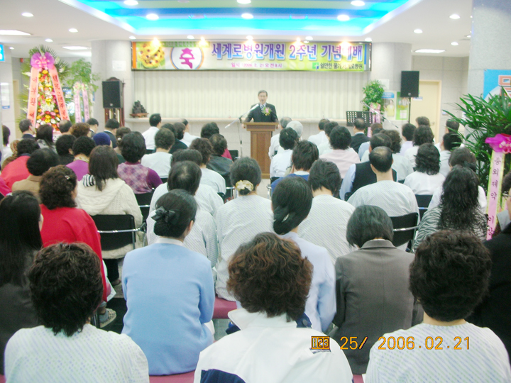 Áö³­ 2¿ù21ÀÏ(È­) ¿ÀÀü8½Ã ¼¼°è·Îº´¿ø¿¡¼­ °¡Áø 2Áֳ⠱â³ä¿¹¹è´Â ÀÌÁø¿ë ºÎ¿øÀåÀÇ »çȸ·Î ÁøÇàµÆÀ¸¸ç, ¾È¿ë¿î ¸ñ»ç(¿Âõ±³È¸)°¡ ¿¡º£¼Ò¼­ 6Àå 5~9Àý ¸»¾¸À» ÅëÇØ ¡®º´¿ø¿¡¼­ ÁÖ¸¦ ¼¶±â¸¦ »ç¶÷µé¡¯À̶ó´Â Á¦¸ñÀÇ ¼³±³¸¦ ÀüÇß´Ù. À̾î À̽µµ ÀÌ»çÀåÀÇ Àλ縻¾¸°ú ±è»ó¼ø º´¿øÀåÀÌ ¼¼°è·Îº´¿øÀÇ ¼³¸³ºÎÅÍ Áö±Ý±îÁö °æ°úº¸°í¸¦ ÀüÇß´Ù. ¶ÇÇÑ Á¤Çö±â À̻簡 °Ý·Á»ç¸¦ ÀüÇß´Ù.