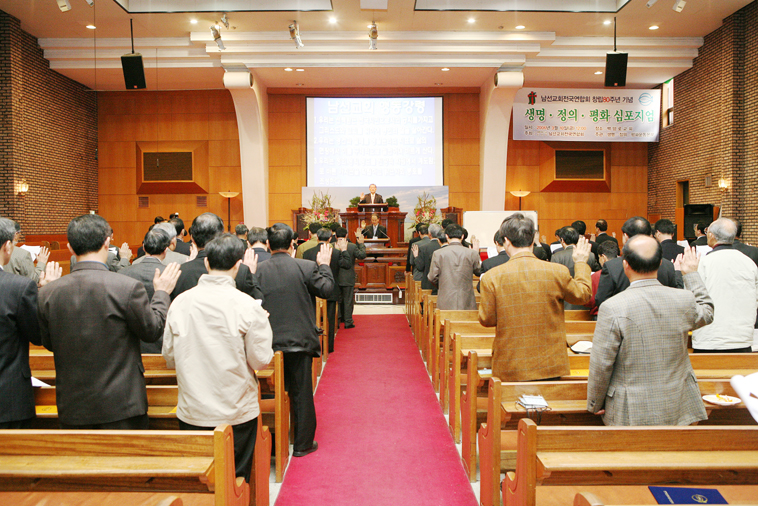 À̳¯ Çà»ç´Â Á¤Á¾¼º Àå·Î(°¡³ª¾È±³È¸)ÀÇ »çȸ·Î ±èÅ¿µ ¸ñ»ç(¹é¾ç·Î±³È¸)ÀÇ ¡®½ÉÀº´ë·Î °ÅµÐ´Ù¡¯´Â Á¦¸ñÀÇ ¼³±³¸»¾¸ÀÌ ÀÖ¾ú´Ù. ±è ¸ñ»ç´Â ¡°±âº»ÀÌ Á¦´ë·Î ¾ÈµÈ »ç¶÷ÀÌ ±³È¸¸¦ Áþ´Â ÀϺ¸´Ù ´õ À§ÇèÇÑ ÀÏÀº ¾ø´Ù¡±¸ç ¡°Çѱ¹±³È¸´Â ÇÌ¹Ú¹Þ´Â°Ô ¾Æ´Ï¶ó ºñ³À» ´çÇϰí ÀÖ´Ù. ÁöµµÀÚºÎÅͰ¡ ±âº»ÀÌ ¹Ù·Î ¼¾ßÇϰڴ١±°í ÀüÇß´Ù. ³²¼±±³È¸ Àü±¹¿¬ÇÕȸ ȸÀåÀÎ È«Èñõ Àå·Î´Â ¡°³²¼±±³È¸´Â 1924³âºÎÅÍ ±×¸®½ºµµ¸¦ À§ÇØ ¼±±³ºÀ»ç¸¦ °¨´çŰ À§ÇØ ½Ã°£°ú ¹°ÁúÀ» Çå½ÅÇÏ¸é¼ ¹°»êÀå·Á¿îµ¿°ú ¹®¸ÍÅðÄ¡ µîÀÇ »ç¾÷À» ¹ú¿©¿Ô´Ù¡±¸ç ¡°°æ°Ç ÀýÁ¦¿îµ¿À» ÀÏÀ¸ÄÑ Çѱ¹±³È¸¸¦ ½ÂȽÃŲ ÀûÀÌ ÀÖ´Â ¸¸Å ³²¼±±³È¸ 80ÁÖ³âÀ» ±â³äÇÏ¸é¼ »ý¸í¡¤Á¤ÀÇ¡¤ÆòȿÀ» Àü°³ÇÏ°Ô µÇ¾ú´Ù. ÀÌ ¿îµ¿ÀÌ »çȸ¿¡ ÆÛÁö´Â ¿µÀû¿îµ¿ÀÌ µÇ¾îÁö±æ ¹Ù¶õ´Ù¡±°í ¿îµ¿ÀÇ ¹è°æ°ú ÇÔ²² ¼Ò°¨À» ÀüÇß´Ù. »ý¸íÁ¤ÀÇÆòȿ Áö¿ªº»ºÎ ¹ß´ë½Ä¿¡ Ç¥¸í¹Î Àå·ÎÀÇ »çȸ·Î Á¶Á÷¹ßÇ¥¿Í ¼±ÀÓÀåÀ» ¼ö¿©ÇÏ´Â ½Ã°£À» °¡Á³´Ù. À̾î Çൿ°·ÉÁ¦Ã¢, ȸ°¡Á¦Ã¢, ½Åµ¿ÀÛ ¸ñ»ç(ºÎ»êÀå½Å´ëÇб³ ÃÑÀå)ÀÇ Ã൵·Î ¿¹¹è´Â ¸¶¹«¸® µÇ¾ú´Ù.