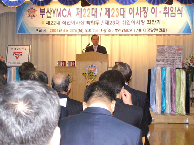 Áö³­ 4¿ù20ÀÏ(¸ñ) ¿ÀÈÄ7½Ã ºÎ»êYMCA ȸ°ü 17Ãþ ´ë°­´ç¿¡¼­ ºÎ»êYMCA ÀÌ»çÀå ÀÌÃëÀÓ½ÄÀÌ ÀÖ¾ú´Ù.