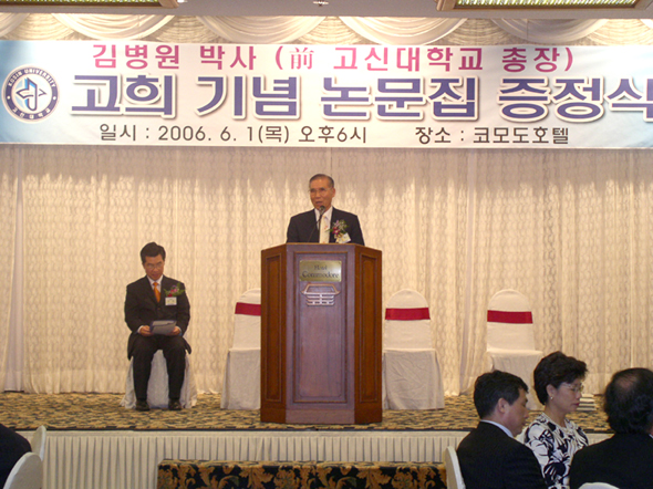 °í½Å´ëÇб³ 60ÁÖ³â Çà»ç·Î ±èº´¿ø ¹Ú»ç(îñ °í½Å´ëÇб³ ÃÑÀå) °íÈñ ±â³ä ³í¹®Áý ÁõÁ¤½ÄÀÌ Áö³­ 1ÀÏ ÄÚ¸ðµµÈ£ÅÚ¿¡¼­ ÀÖ¾ú´Ù.