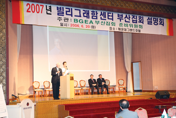 ÃÖÈ«ÁØ ¸ñ»ç(±âµ¶±³ÇùÀÇȸ °øµ¿ÀÇÀå, È£»ê³ª±³È¸)ÀÇ »çȸ·Î ½ÃÀÛµÈ ¼³¸íȸ´Â ±è⿵ ¸ñ»ç(ºÎ»ê±âµ¶±³ÇùÀÇȸ ´ëǥȸÀå)ÀÇ ±âµµ¿Í Á¤Çʵµ ¸ñ»ç(BGEA Á¶Á÷ ÁغñÀ§¿øÀå)ÀÇ È¯¿µÀλ簡 ÀÖ¾ú´Ù. Á¤ ¸ñ»ç´Â ¡°Áö³­ 73³â ¼­¿ï¿¡¼­ 1000¸¸¿¡ °¡±î¿î »ç¶÷µéÀÌ ¸ð¿´´ø ¸¸Å­ ºÎ»ê¿¡¼­µµ 50¸¸¸í Á¤µµ ¸ð¿©¼­ Àü±¹À» ±ô¦ ³î·¡Å³ °ÍÀÌ´Ù¡±°í ¸»Çß´Ù.