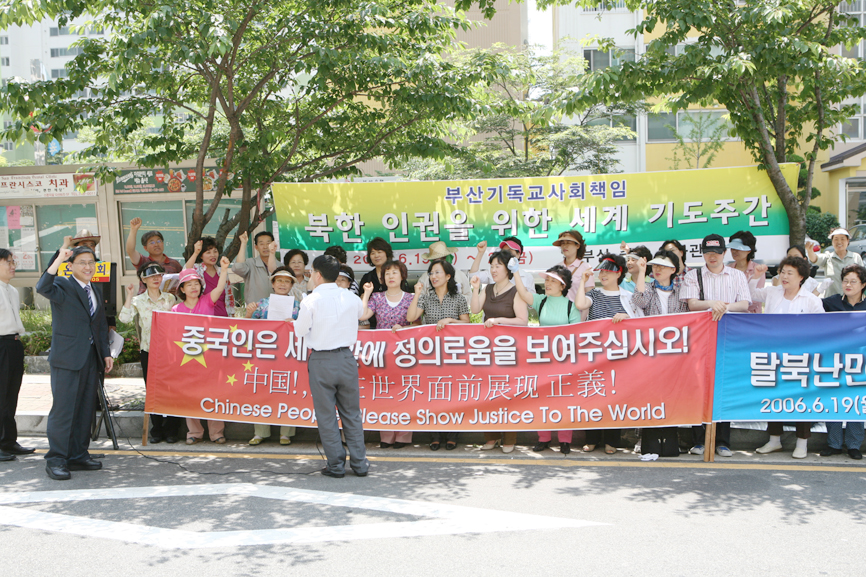 Áö³­ 19ÀÏ(¿ù)ºÎÅÍ 23ÀÏ(±Ý)±îÁö ¡®ºÏÇÑÀ» À§ÇÑ ¼¼°è ±âµµ ÁÖ°£¡¯À» °¡Áö°í ±âµ¶±³»çȸåÀÓÀÇ ÁÖ°üÀ¸·Î ¡®Å»ºÏ ³­¹Î °­Á¦ºÏ¼Û ÁßÁö Ã˱¸ ¿¬¼Ó ±âµµÈ¸¡¯¸¦ ÇØ¿î´ë¿¡ À§Ä¡ÇÑ ºÎ»êÁß±¹¿µ»ç°ü ¾Õ¿¡¼­ °¡Á³´Ù.