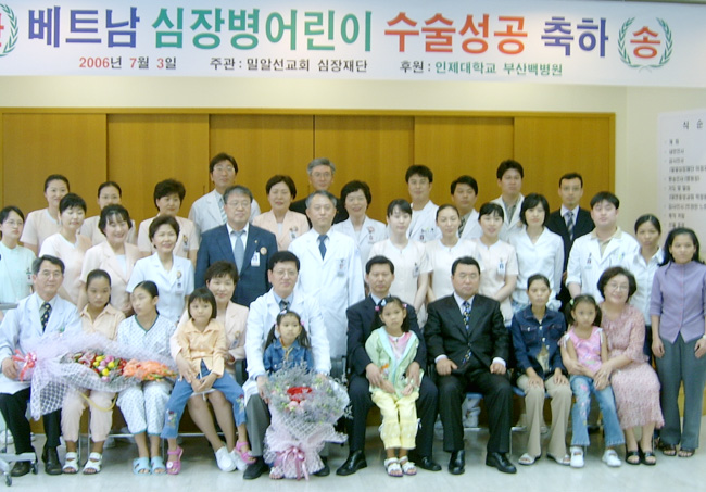 º£Æ®³² ¾î¸°ÀÌ ½ÉÀ庴 ¼ö¼ú¼º°ø ÃàÇÏ Çà»ç°¡ Áö³­ 3ÀÏ ¹Ð¾Ë½ÉÀåÀç´Ü ÁÖ°üÀ¸·Î ºÎ»ê¹éº´¿ø¿¡¼­ ÀÖ¾ú´Ù. À̳¯ ¹Ð¾Ë ½ÉÀåÀç´Ü ÀÌÁ¤Àç ¸ñ»ç´Â ¡°½ÉÀ庴 ¾î¸°ÀÌ ¼ö¼úÀ» À§ÇØ µµ¿òÀ» Áֽб³È¸¿Í º´¿ø¿¡ °¨»çÇÏ´Ù¡±¸é¼­ ¡°ÀÌ ¾ÆÀ̵éÀÇ ½ÉÀå¿¡ µû¶æÇÑ Çǰ¡ »õ·Î È帣¸é »ç¶ûÀ̶ó´Â ¼ÒÁßÇÑ ¹Ð¾Ë·Î ÀÚ¶ó³ª ¾ðÁ¨°¡ °¡³­°ú °íÅë¿¡ ½ÅÀ½ÇÏ´Â À̵éÀ» À§ÇØ ½ÏÀ» Æ·¿ï °Í¡±À̶ó°í ÀüÇß´Ù. ÀÌ¾î ºÎ»ê ¹éº´¿ø Á¶±¤Çö ¿øÀåÀº ¡°°³µµ±¹¿¡ ¼ÓÇß´ø ¿ì¸®³ª¶óÀÇ ½ÉÀ庴 ¾î¸°À̸¦ ¼±Áø±¹¿¡¼­ ¼ö¼ú ÇØÁØ °Í°ú °°ÀÌ ¿ì¸®µéµµ º£Æ®³²¿¡ Çϳª´ÔÀÇ »ç¶ûÀ» ÀüÇÏ°Ô µÊÀ» °¨»çÇÏ°Ô »ý°¢ÇÑ´Ù¡±°í ȯ¼ÛÀλ縦 ´ë½ÅÇß´Ù. À̳¯ ´ë¿¬Áß¾Ó±³È¸ ¹ÚÁ¤¿ø ¸ñ»ç´Â ¡°7¸íÀÇ ¾î¸° ¿µÈ¥µéÀÌ ¿¹¼ö´ÔÀ» ±íÀÌ ¸¸³ª ±¸¿ø¹Þ´Â ÃູÀÌ Àֱ⸦ ¹Ù¶õ´Ù¡±°í ¸»¾¸À» ÀüÇß´Ù. ÀÌ¿¡ º£Æ®³² ¾î¸°ÀÌ Æ®¸°¹Î ´ÀÈ÷´Â ¡°¸ö°ú ¸¶À½ÀÌ Èûµé¾î ¿Ô´Âµ¥, ÀÇ»ç¿Í °£È£»çºÐµéÀÌ Á¤¼º²¯ º¸»ìÆì Áּż­ °¨»çÇÏ´Ù¡±°í °¨»çÀλ縦 ÀüÇß´Ù.