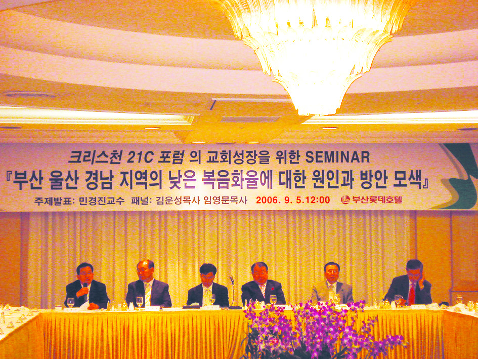¹Î ±³¼ö´Â ¹ßÇ¥¿¡¼ ¡°ºÎ¿ï°æ Áö¿ªÀº ³ÃȤÇÑ Çö½ÇÀ» ±×´ë·Î ¹Ý¿µÇϰí ÀÖ´Ù. °¡·É ºÎ»êÀÇ °æ¿ì, Á¾±³Àα¸ Áß °³½Å±³´Â 11.1%(1995³â)¿¡¼ 10.4%(2005³â)·Î Ãß¶ôÇÑ ¹Ý¸é, õÁÖ±³´Â 4.6%¿¡¼ 7.4%·Î ¼ºÀåÇß°í ºÒ±³ ¿ª½Ã 38.2%¿¡¼ 39.2%·Î ¼ºÀåÇß´Ù. ƯÈ÷ °æ³²ÀÇ ºÒ±³¼¼´Â ²ªÀÌÁö ¾Ê°í ÀÖ´Ù. Áö³ 10³â µ¿¾È ºÒ±³ ¿ª½Ã ÀüüÀα¸´ëºñ 23.2%¿¡¼ 22.8%·Î ¶³¾îÁ³Áö¸¸ °æ³²ÀÇ ºÒ±³Àα¸´Â 1995³âÀÇ 36.3%¿¡¼ 2005³â¿¡´Â 40.1%·Î Àü±¹¿¡¼ °¡Àå °¡ÆÄ¸¥ »ó½Â¼¼¸¦ º¸À̰í ÀÖ´Ù¡±¸ç À̸¦ ±Øº¹Çϱâ À§Çؼ´Â ¡°³ª¿Í ÀÖ´Â Åë°èÀÚ·áµéÀ» ºñ·ÔÇÑ ¼¼»óÀÇ ¼Ò¸®¸¦ µé¾î¾ß ÇÑ´Ù¡±°í ÀüÇß´Ù. ±×¸®°í ¡°¿ì¸®´Â ¡®¼±Æ÷¡¯ÇÑ ÈÄ ¡®Ãʴ롯ÇÏ·Á°í ÇÏÁö¸¸, ÇÇÀüµµÀÚµéÀº ¡®¼³¸í¡¯À» ÅëÇØ ¼³µæ´çÇÏ°í ½Í¾î ÇÑ´Ù´Â °ÍÀÌ´Ù. ¶ÇÇÑ ¸»·Î ÀüµµÇÏÁö ¸»°í ½ÇõÀ» ÅëÇØ ÀüµµÇ϶ó´Â °ÍÀÌ´Ù¡±¸ç Àüµµ ¹æ½ÄÀ» Àç°íÇØ¾ß ÇÑ´Ù°í ¹àÇû´Ù. ±×¸®°í ¡°Á¦»ç¹®Á¦´Â ÀÌ Áö¿ª¼±±³¿¡ ¸Å¿ì Å« °É¸²µ¹ÀÌ µÇ°í ÀÖÀ¸¸ç, ÀÌ ¹®Á¦¸¦ ½ÅÇÐÀûÀ¸·Î, ¸ñȸÇöÀåÀÇ °üÁ¡¿¡¼ Ä¡¹ÐÈ÷ ¿¬±¸ÇØ ³»¾ß ÇÑ´Ù¡±°í ÁöÀûÇß´Ù.