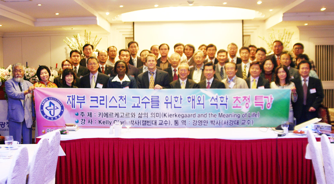 °í½Å´ëÇб³ °³±³ 60Áֳ⠱â³ä»ç¾÷ÀÇ ÀÏȯÀ¸·Î °í½Å´ë ±è¼º¼ö ÃÑÀåÀº ÇöÀç °í½Å´ëÇб³¿Í Ȱ¹ßÇÑ ±³·ù¸¦ °¡Áö°í ÀÖ´Â ¹Ì±¹ÀÇ Àú¸í ±âµ¶±³ ´ëÇÐÀΠĶºó´ëÇб³ÀÇ Ã¶Çаú Kelly Clark¹Ú»ç¸¦ ÃÊûÇÏ¿© 23ÀÏ(¿ù) ¿ÀÈÄ 7½Ã °í½Å´ëÇб³¸¦ Æ÷ÇÔÇÑ ¾à 9°³ÀÇ ÀçºÎ ´ëÇп¡ ¼Ò¼ÓµÈ Å©¸®½ºÃµ ±³¼öµéÀ» ´ë»óÀ¸·Î ¡®Å°¿¡¸£ÄÉ°í¸£¿Í »îÀÇ ÀǹÌ(Kierkegaard and the Meaning of Life)¡® ¶ó´Â ÁÖÁ¦·Î ÃÊû Ư°­À» °¡Á³´Ù. ÃÊû °­»çÀÎ Kelly Clark ±³¼ö´Â Áö³­ 1989³â ÀÌ·¡ Ķºó´ëÇб³¿¡¼­ öÇаú ±³¼ö·Î ºÀÁ÷Çϰí ÀÖÀ¸¸ç University of Notre Dame¿¡¼­ öÇйڻç ÇÐÀ§¸¦ ¹Þ¾Ò°í ºÐ¼®Ã¶ÇÐ ºÐ¾ß¿¡¼­ Ưº°È÷ ½ÅÇÐÀÇ Á¢¸ñ°ú ´õºÒ¾î Áß±¹ÀÇ µ¿¾çöÇаú ¼­¾çöÇаúÀÇ °øÁ¸¼ºÀ» ã°íÀÚ Áö³­ ¼ö³â°£ Áß±¹´ëÇаú Ȱ¹ßÇÑ ±³·ù¸¦ °¡Áö°í ÀÖ´Â ½ÅÇРöÇÐ ºÐ¾ßÀÇ ¼®ÇÐÀÌ´Ù. À̳¯ Âü¼®ÇÑ 50¿©¸íÀÇ Å©¸®½ºÃµ ±³¼öµéÀº °¢ ºÐ¾ß¿¡¼­ ±âµ¶±³ÀÎÀ¸·Î¼­ »ì¾Æ°¡¾ß ÇÒ »îÀÇ Àǹ̵éÀ» ³íÀÇÇϸç ÇÔ²² µ¿¿ªÇÒ °ÍÀ» »õ·Ó°Ô ´ÙÁüÇÏ´Â ±ÍÇÑ ½Ã°£À» °¡Á³´Ù. ¶ÇÇÑ, °í½Å´ëÇб³ ´ëÇпø»ýÀ» ´ë»óÀ¸·Î ¡®°³ÇõÁÖÀÇ ÀνķÐÀÇ º¯Áõ¡¯(A Defense of Reformed Epistemology)À̶ó´Â ÁÖÁ¦·Î Ư°­À» °¡Áö±âµµ Çß´Ù.