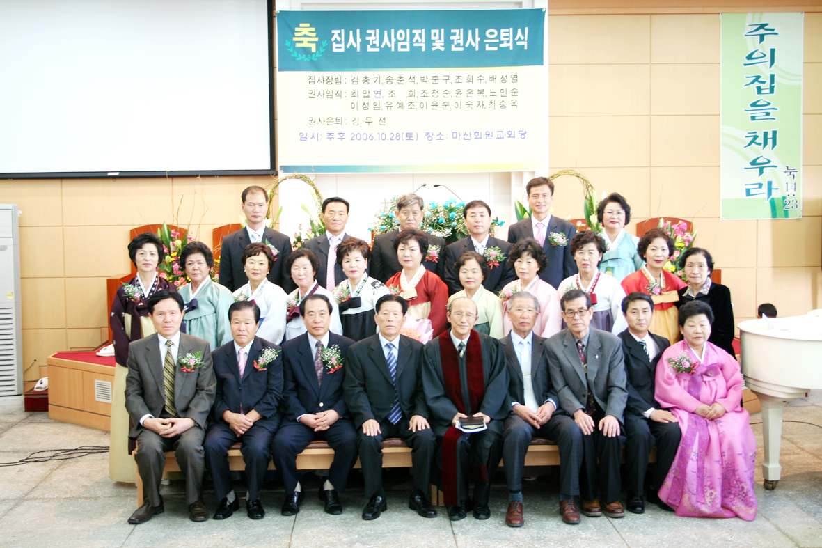Áö³­ 10¿ù28ÀÏ(Åä) ¿ÀÈÄ2½Ã ¸¶»êȸ¿ø±³È¸(¿ÁÄ¡ÀÎ ¸ñ»ç)¿¡¼­ Áý»çÀ帳, ±Ç»çÀÓÁ÷, ±Ç»çÀºÅð½ÄÀ» °¡Á³´Ù. ´çȸÀå ¿ÁÄ¡ÀÎ ¸ñ»ç Áý·Ê·Î ±è¿µ½Ä ¸ñ»ç(°¨Ãµ±³È¸)ÀÇ ±âµµ¿Í À±Çüµæ Àå·Î(¸¶»êµ¿±¤±³È¸)ÀÇ ¼º°æºÀµ¶¿¡ À̾î À̱ݵµ ¸ñ»ç(Áõ°æÃÑȸÀå)°¡ ¼³±³ÇßÀ¸¸ç, Áý»çÀ帳½Ä°ú ±Ç»ç ÀÓÁ÷½ÄÀ» °¡Áø ÈÄ Áý·ÊÀÚ°¡ ±âµµÇÏ°í ¸¶»êȸ¿ø±³È¸ À帳Áý»ç¿Í ±Ç»ç µÈ °ÍÀ» °øÆ÷Çß´Ù.