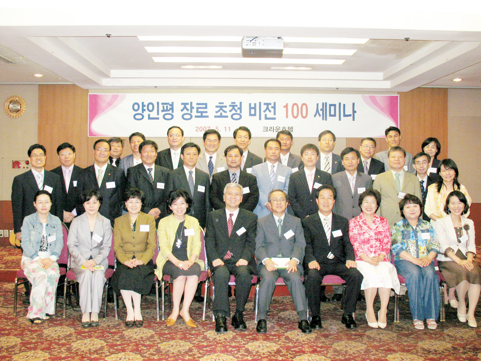 Å©¸®½ºÃµ 21¼¼±â Æ÷·³ ºñÀü 100ÀÎ À§¿øÈ¸(À§¿øÀå ±è½Å Àå·Î)´Â Áö³ 11ÀÏ(±Ý) ¿ÀÈÄ 6½Ã 30ºÐ Å©¶ó¿îÈ£ÅÚ¿¡¼ ¾çÀÎÆò Àå·Î(¿©Àǵµ ¼øº¹À½±³È¸)¸¦ ÃÊû, ¼¼¹Ì³ª¸¦ °¡Á³´Ù. ½Ä»ç¿¡ ÀÌÀº ±Û·Î¸®¾Æ Âù¾çÆÀÀÇ Àεµ·Î Âù¾ç°ú ±âµµÀÇ ½Ã°£À» °¡Á³À¸¸ç, 3ºÎ¿¡¼´Â ¾çÀÎÆò Àå·Î°¡ ¡®¼±·®ÇÑ ¹æ°üÀÚ¡¯¶ó´Â ÁÖÁ¦·Î °¿¬Çß´Ù. ¾ç Àå·Î´Â ÀÚ½ÅÀÇ °£Áõ°ú ´õºÒ¾î ¡°ÀλýÀÇ ÇÏÇÁŸÀÓ Àü¡¤ÈÄ ½ÃÁ¡ÀÎ 40´ë°¡ Áß¿äÇÏ´Ù¡±¸ç ºñÀü 100ÀÎ À§¿øÈ¸ÀÇ ±¸¼º¿øÀÎ 40´ë ÀüÈÄÀÇ Å©¸®½ºÃµ ÁöµµÀÚµéÀÌ ¹æ°üÀÚ°¡ µÇÁö ¸»°í, ¾ÇÇÑ ÀÌ ¼¼´ë¸¦ ÇâÇØ ÈûÀ» ÇÕÃÄ ÀúÇ×ÇÒ °ÍÀ» ¿ª¼³Çß´Ù. ¶ÇÇÑ ¡°ÀÌ ¸ðÀÓÀ» ÅëÇØ ºÎ»ê¿¡ »õ·Î¿î ¹Ù¶÷ÀÌ ºÒ °ÍÀ» ±â´ëÇϸç, ºÎ»êÀ» »ì¸®´Â ¸ðÀÓÀÌ µÇ±æ ¹Ù¶õ´Ù¡±°í ÀüÇß´Ù. ¾çÀÎÆò Àå·Î´Â 27¼¼ ÁîÀ½ ÆÇ»ç°¡ µÇ¾ú°í, 37¼¼¿¡ Àå·Î°¡ µÇ¾î ÇöÀç ¿©Àǵµ ¼øº¹À½±³È¸ÀÇ Àå·ÎÀÌÀÚ ¹ý¹«¹ýÀÎ ·Î°í½º ´ëÇ¥º¯È£»ç·Î ¼º½Ãȿ °øµ¿º»ºÎÀå ¹× Çѱ¹È¦¸®Å¬·´¿¬ÇÕȸ °øµ¿È¸Àå, Àç´Ü¹ýÀÎ ¾Æ°¡Æä ÀÌ»ç µîÀ¸·Î Ȱµ¿Çϰí ÀÖ´Ù. ºñÀü 100ÀÎ À§¿øÈ¸´Â Áö³ÇØ 9¿ù Ãâ¹üÇÑ º¯È£»ç, ±³¼ö, ¾ð·ÐÀÎ, »ç¾÷°¡, ÀÇ»ç, °øÁ÷ÀÚ, ¹®È¿¹¼úÀÎ µî 40´ë¸¦ Áß½ÉÀ¸·Î ÇÑ ºÎ»êÁö¿ª Àü¹®Á÷ Å©¸®½ºÃµ ÁöµµÀÚµéÀÇ ¸ðÀÓÀÌ´Ù.