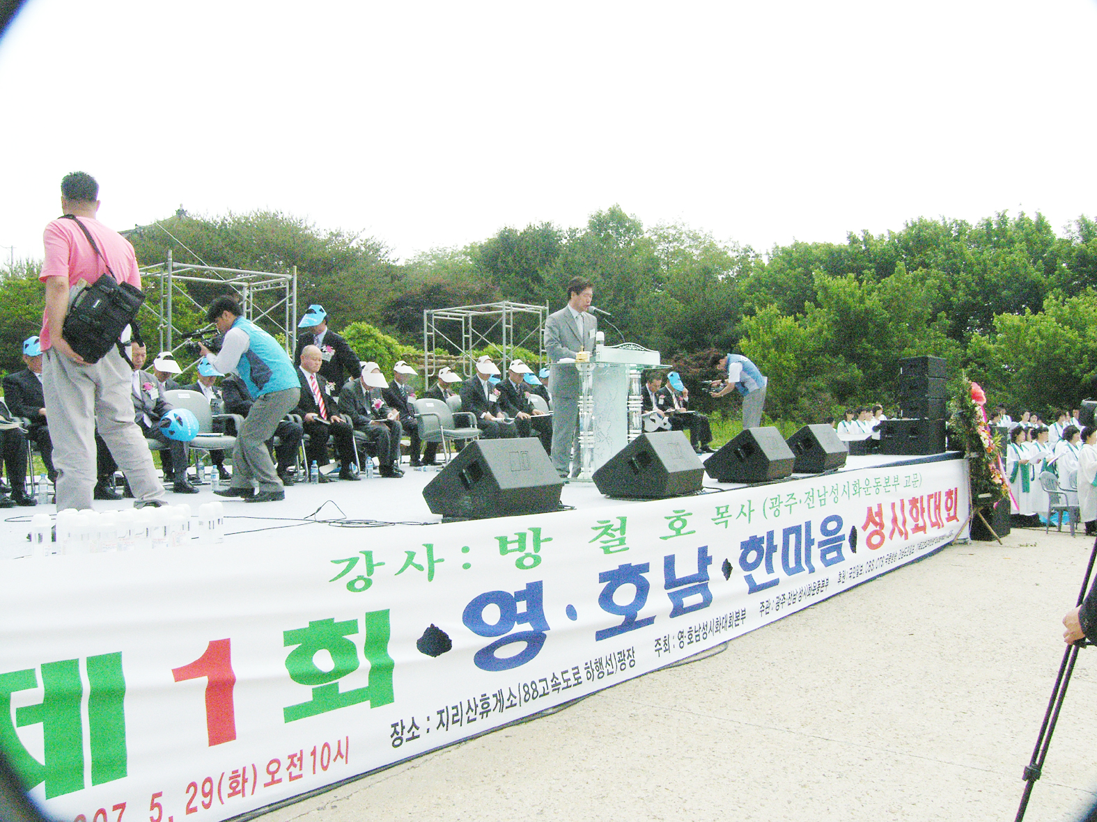 ¿µÈ£³² ±âµ¶±³ÀεéÀÇ ¸¸³²ÀÎ Á¦1ȸ ¿µÈ£³² ÇѸ¶À½ ¼º½ÃÈ´ëȸ°¡ Áö³ 5¿ù29ÀÏ 88°í¼Óµµ·Î Áö¸®»êÈÞ°Ô¼Ò ±¤Àå¿¡¼ °³ÃֵƴÙ. ¿µ³²ÀÇ ºÎ»ê±âµ¶±³ÃÑ¿¬ÇÕȸ(´ëǥȸÀå Á¤°æÃ¶ ¸ñ»ç), ´ë±¸¼º½ÃÈ(´ëǥȸÀå Á¶µ·Á¦ ¸ñ»ç)¿Í ºÎ»ê¼º½ÃÈ(º»ºÎÀå Á¤Çʵµ ¸ñ»ç), ¿ï»ê¼º½ÃÈ(´ëǥȸÀå ÀÌÀ±±¸ Àå·Î), ±¸¹Ì¼º½ÃÈ(´ëǥȸÀå ±è½Âµ¿ ¸ñ»ç), â¿ø¼º½ÃÈ(º»ºÎÀå À±Èñ±¸ ¸ñ»ç) ÀÓ¿øµéÀÌ Âü¼®Çß°í, È£³²¿¡´Â ±¤ÁÖÀü³²¼º½ÃÈ(´ëǥȸÀå Á¤¿øÈñ ¸ñ»ç), Àü³²±âµ¶±³¿¬ÇÕȸ(ȸÀå ¹Ú³²ÀÎ ¸ñ»ç), ±¤ÁÖ¼º½ÃÈ(´ëǥȸÀå ÀÌÁ¤Àç Àå·Î), ÀüºÏ¼º½ÃÈ(´ëǥȸÀå ±èµ¿°Ç ¸ñ»ç)µî °¢ Áö¿ª ¼ºµµ 2õ¿©¸íÀÌ Âü¼®Çß´Ù. 1ºÎ °æ¹è¿Í Âù¾ç¿¡ À̾î 2ºÎ ¿¹¹è¿¡¼´Â ¹Ú³²ÀÎ ¸ñ»ç(Àü³² ±âµ¶±³¿¬ÇÕȸÀå)ÀÇ Àεµ·Î Á¤°æÃ¶ ¸ñ»ç(ºÎ»ê±âµ¶±³ÃÑ¿¬ÇÕȸ ´ëǥȸÀå)ÀÇ ´ëÇ¥±âµµ, ¹æÃ¶È£ ¸ñ»ç(±¤ÁÖ, Àü³² ¼º½Ãȿº»ºÎ °í¹®)ÀÇ ¡®³ª¶ó»ç¶û ¸¶À½¡¯À̶ó´Â ¸»¾¸ÀÌ ÀÖ¾ú´Ù. ¹æÃ¶È£ ¸ñ»ç´Â ¡°¿µÈ£³²ÀÌ ÇϳªµÇ¾î Áö¿ªÀ» º¹À½È ÇÏ´Â °ÍÀÌ ³ª¶ó¸¦ »ç¶ûÇÏ´Â ¸¶À½¡±À̶ó¸ç ¡°°¢ Áö¿ª ¼º½ÃȿÀÌ ºÒ°°ÀÌ ÀϾ Áö¿ªº¹À½È¿¡ Èû¾²ÀÚ¡±°í °Á¶Çß´Ù. ÇÑÆí, Çսɱ⵵½Ã°£¿¡´Â ¡®¼º½Ãȸ¦ À§ÇÑ È¸°³ ±âµµ¡¯(±Ç¼º¼ö ¸ñ»ç), ¡®¿µ È£³² ÇѸ¶À½À» À§ÇÏ¿©¡¯(±è½Âµ¿ ¸ñ»ç), ¡®±¹°¡¿Í ÁöµµÀÚ¸¦ À§ÇÏ¿©¡¯(À±Èñ±¸ ¸ñ»ç), ¡®¼¼°è ¹Ú¶÷ȸ À¯Ä¡¿Í °æÁ¦¹ßÀüÀ» À§ÇÏ¿©¡¯(±è¹üÁØ ¸ñ»ç)µîÀÌ °¢°¢ ±âµµÇß´Ù. ÀÌÈÄ ¼º½Ãȿ ÃÑÀç ±èÁØ°ï ¸ñ»çÀÇ °Ý·Á»ç¿Í ¹è¾ß¼· ¸ñ»ç(±¤ÁÖ, Àü³² ¼º½Ãȿº»ºÎ °í¹®), ÀÌÀ±±¸ Àå·ÎÀÇ Ãà»ç°¡ ÀÖ¾úÀ¸¸ç, À±ÅÂÁØ ¸ñ»ç(´ë±¸±âµ¶±³¿¬ÇÕȸ ÀüÀÓȸÀå)ÀÇ Ã൵·Î Çà»ç¸¦ ¸¶¹«¸® Çß´Ù. ¼º½ÃȿÃÑÀç ±èÁØ°ï ¸ñ»ç´Â ¡°¿µÈ£³² ±³È¸°¡ ¾ÕÀå¼¼ µ¿¼°¥µî°ú Áö¿ª°¨Á¤ÀÇ °ñ¸®¾ÑÀ» ¹«³Ê¶ß·Á ¹ö¸®ÀÚ¡±¸ç ¡°±³È¸°¡ ¹ÎÁ·ÈÇÕÀÇ ´Ù¸®¸¦ ³õÀÚ¡±°í °Á¶Çß´Ù.