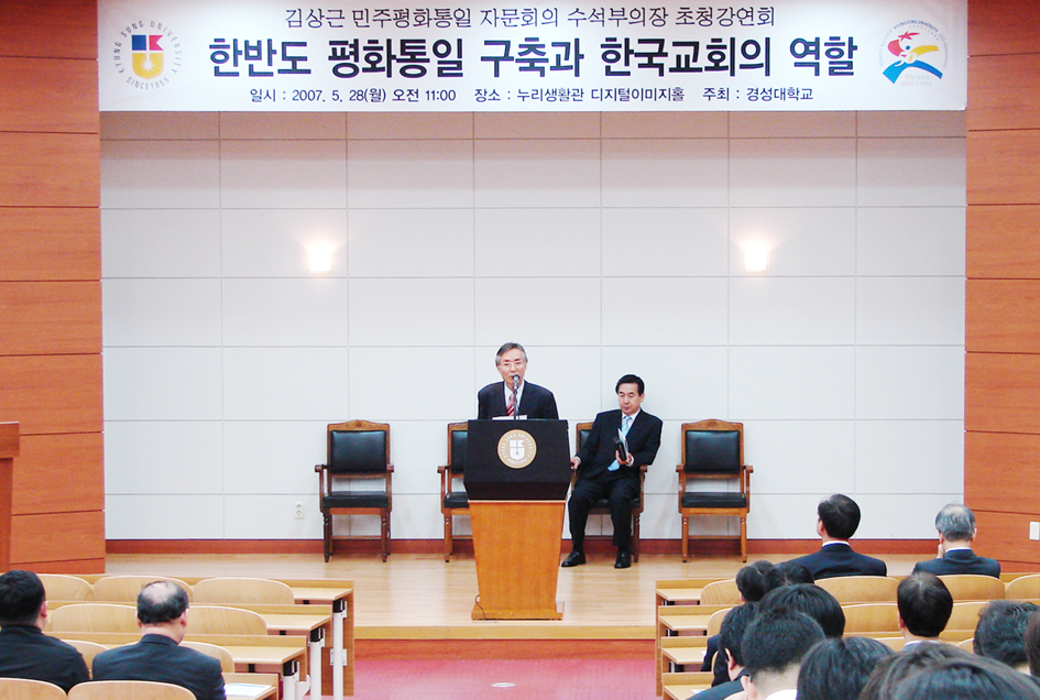 °æ¼º´ëÇб³°¡ °³±³ 52ÁÖ³âÀ» ±â³äÇÏ¿© ´Ù¾çÇÑ ±â³äÇà»ç¸¦ °³ÃÖÇß´Ù. Áö³­ 28ÀÏ(¿ù) °æ¼º´ëÇб³ ´©¸®»ýȰ°ü À̹ÌÁöȦ¿¡¼­ °³±³52Áֳ⠱â³ä Á¦1ȸ ¿¡Å¥¸Þ´ÏÄ® ½ÅÇа­¿¬È¸°¡ ¿­·È´Ù. À̳¯ °­¿¬È¸¿¡´Â ºÎ»ê¡¤°æ³² Áö¿ª¿¡¼­ »ç¿ª ÁßÀÎ ¿©·¯ ¸ñ»çµéÀ» ÃÊûÇÏ¿© ºÏ¹Ì°ü°èÀÇ °³¼± µî ÃÖ±Ù Çѹݵµ¸¦ µÑ·¯½Ñ ÆòÈ­ÅëÀÏ ¹®Á¦°¡ Çѱ¹»çȸÀÇ Áß¿äÇÑ À̽´·Î ¶°¿À¸£°í ÀÖ´Â °Í¿¡ Âø¾È, ÆòÈ­ÅëÀÏÀ» ´ëºñÇÏ¿© Çѱ¹±³È¸°¡ ¾ÕÀ¸·Î °ú¿¬ ¾î¶°ÇÑ ¼±±³ Àû ¿ªÇÒÀ» ´ã´çÇØ¾ß Çϴ°¡¿¡ ´ëÇÑ ¿Ã¹Ù¸¥ Àνİú ½ÇõÀ» ¹ÙÅÁÀ¸·Î ¡®21¼¼±â Çѹݵµ ÆòÈ­ÅëÀÏ ±¸Ãà°ú Çѱ¹±³È¸ÀÇ ¿ªÇÒ¡¯À̶õ ÁÖÁ¦·Î 100¿©¸íÀÌ ¸ðÀÎ °¡¿îµ¥ ÁøÇàµÆ´Ù. 1ºÎ¿¡¼­ ±è¸í¼ö ¸ñ»ç(½ÅÇдë ÇÐÀå)ÀÇ ¡®ÆòÈ­¸¦ À§ÇÏ¿© ÀÏÇÏ´Â »ç¶÷¡¯À̶ó´Â ¼³±³¸»¾¸¿¡¼­, ¡°³»°¡ °¡Áø ÈûÀ» ºñ¿ì°í, ´ú¾î³»°í, ³ª´­ ¶§ ÁøÁ¤ÇÑ ÆòÈ­°¡ ¿Â´Ù¡± ¸ç ¡°À̰ÍÀº ¿¹¼ö ±×¸®½ºµµÀÇ »î¼Ó¿¡¼­ ãÀ» ¼ö ÀÖ´Ù¡±°í ÀüÇß´Ù. ¶ÇÇÑ ¿¹¼ö±×¸®½ºµµÀÇ ¡®ÆòÈ­¸¸µé±â¡¯¿Í ·Î¸¶Á¦±¹ÀÇ ¡®ÆòÈ­ÁöŰ±â¡¯¿¡ ´ëÇÑ Â÷ÀÌÁ¡À» ¼³¸íÇϸç, ¡°¿ì¸®µµ Çϳª´ÔÀÇ ÆòÈ­¸¦ ¸¸µå´Â »ç¶÷ÀÌ µÇ¾î¾ß ÇÒ °Í¡±À̶ó°í ¾ð±ÞÇß´Ù. ³ªÁᫎ ÃÑÀåÀÇ Àλ縻¿¡ À̾î 2ºÎ¿¡´Â ±è»ó±Ù ¸ñ»ç(¹ÎÁÖÆòÈ­ÅëÀÏ ÀÚ¹®È¸ÀÇ ¼ö¼®ºÎÀÇÀå)ÀÇ °­¿¬È¸ ¹× ÁúÀÇÀÀ´äÀÌ À̾îÁ³´Ù. 30ÀÏ(¼ö)¿¡´Â ±â³ä¿¹¹è¿Í ¹ýÇм¼¹Ì³ª°¡ °³ÃֵǾúÀ¸¸ç, ´©¸®»ýȰ°ü µðÁöÅÐÀ̹ÌÁö Ȧ¿¡¼­´Â ±â³ä½ÄÀ» °®°í ¿ì¼ö ±³Á÷¿ø ¹× ¸ð¹üÇлý°ú Çкθðµé¿¡°Ô ǥâÀåÀ» ¼ö¿©Çß´Ù.