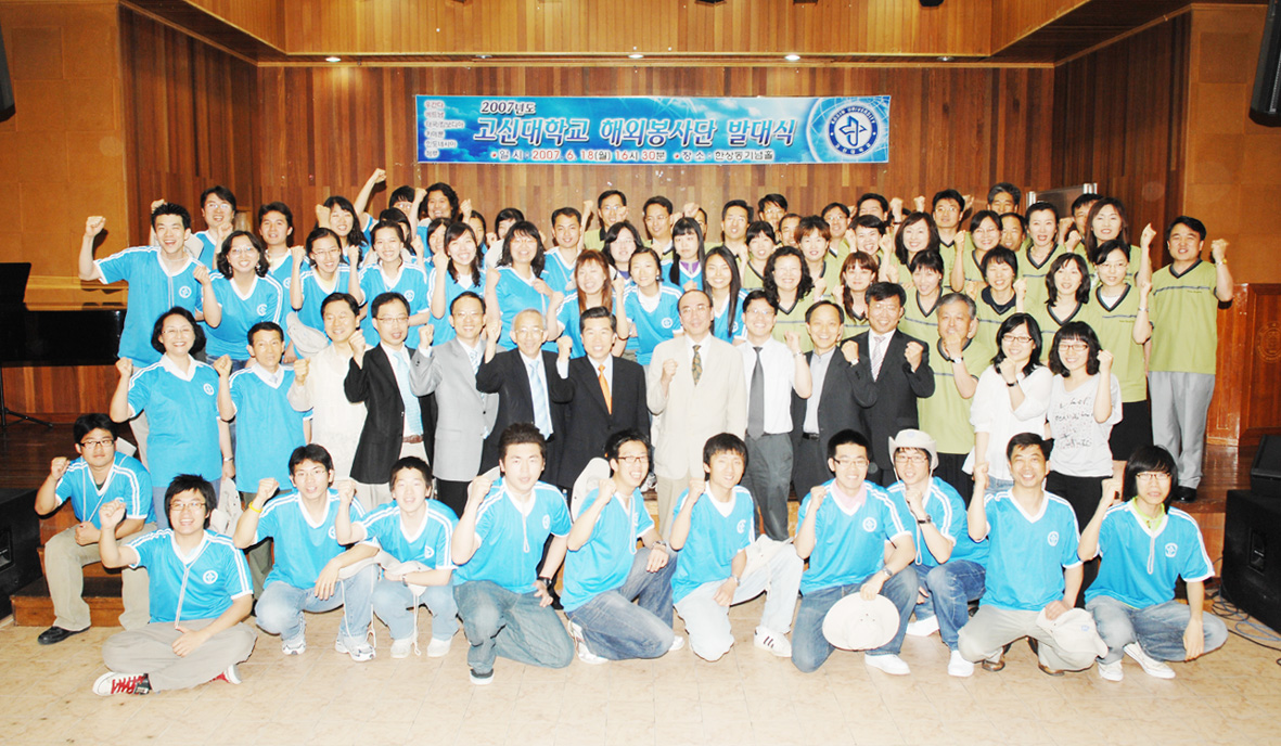 °í½Å´ëÇб³(ÃÑÀå ±è¼º¼ö)´Â 18ÀÏ(¿ù) ¿ÀÈÄ 4½Ã 30ºÐ ÇÑ»óµ¿ ±â³äȦ¿¡¼ ¡®2007 ÇØ¿ÜÀÚ¿øºÀ»ç´Ü¡¯ ¹ß´ë½ÄÀ» °¡Á³´Ù. Áö³ 2006Çг⵵ °³±³ 60ÁÖ³âÀ» ¸ÂÀÌÇÏ¿© ¿ì°£´Ù, Çʸ®ÇÉ, ű¹(įº¸µð¾Æ)¿¡ 51¸íÀÇ ÇØ¿ÜÀÚ¿øºÀ»çÀÚ¸¦ ÆÄ°ßÇÏ¿© ±³À°ºÀ»ç, ³ë·ÂºÀ»ç, °¡Á¤¹æ¹®, °ø¿¬, ¹°Ç°Áö¿ø, ¹®È±³·ù µî ´Ù¾çÇÑ ºÀ»ç ÇÁ·Î±×·¥À» ÁøÇàÇÑ °í½Å´ëÇб³´Â ¿ÃÇØµµ ÇØ¿ÜÀÚ¿øºÀ»çÀÚµéÀ»(°í½ÅÀÇ´ë ÀÇ·áºÀ»ç´Ü ÀÏÁ¤Æ÷ÇÔ, º£Æ®³² 6¿ù 25ÀÏ~7¿ù 2ÀÏ, ű¹¤ýįº¸µð¾Æ´Â 6¿ù 25ÀÏ~7¿ù 3ÀÏ, Ä«¸Þ·é 7¿ù 21ÀÏ~7¿ù 31ÀÏ, ¿ì°£´Ù(ÄɳÄ) 7¿ù 23ÀÏ~8¿ù 3ÀÏ, Àεµ³×½Ã¾Æ 7¿ù 27ÀÏ~8¿ù 2ÀÏ, Æä·ç 8¿ù 17ÀÏ~8¿ù 29ÀÏ) 6°³±¹ ÃÑ 80¿©¸íÀ» ÆÄ°ß, °í¾Æ¿ø°ú ³¹ÎÃÌ µîÀ» ¹æ¹®ÇÏ¿© °ÇÃຸ¼ö, ¹®È°ø¿¬, ¿¬±Ø, ¸¶¼ú, °¡Á¤¹æ¹®, ¹°Ç°Áö¿ø, Áï¼® »çÁø Âï¾îÁÖ±â, dz¼± ¾ÆÆ®, ¾î¸°ÀÌ Ä·ÇÁ µî ´Ù¾çÇÑ ºÀ»çȰµ¿À» Àü°³ÇÒ °èȹÀÌ´Ù. À̳¯ ¹ß´ë½Ä¿¡¼ »çȸ¸¦ ¸ÃÀº ±èÁ¾¹Î ÇлýÁö¿øÃ³ÀåÀº ¡°¿µÈ, ¶ô ÄܼƮ, À½¾Çȸ µîÀ» º¸°í ³ª¿Ã ¶§ »ç¶÷µéÀÇ Ç¥Á¤ÀÌ ¹à´Ù´Â ¸®¼Ä¡ Á¶»ç °á°ú¸¦ º»ÀûÀÌ ÀÖ´Ù¡±°í ÀüÇÏ¸ç ¡°À̹ø ÇØ¿ÜÀÚ¿øºÀ»ç´Ü¿øµéÀÌ ±Í±¹ÇÒ ¶§ ¾î´À µå¶ó¸¶³ª ¿µÈ¸¦ º¸°í ³ª¿Ã ¶§ º¸´Ù ÇູÇÑ Ç¥Á¤À¸·Î µ¹¾Æ¿Ã °ÍÀ» È®½Å ÇÑ´Ù ¡±°í ¸»Çß´Ù. Áö³ ºÀ»ç´ÜµéÀÇ È°¾àÀ» ´ãÀº ¿µ»ó°ú 2007 ÇØ¿ÜºÀ»ç´Ü ÀÏÁ¤ µî¿¡ °üÇÑ ÇÁ¸®Á¨Å×ÀÌ¼Ç ½Ãû ¿¡ ÀÌ¾î ¹ÚÇѼö Çпì(½ÅÇаú 4)ÀÇ ´ëÇ¥¼±¼¸¦ ÅëÇØ »õ·Î¿î ¼¼°è·ÎÀÇ µµÀü¿¡ ÈûÀ» ºÏµ¸À¸¸ç »ç¶ûÀÇ »ý¸íÀ» ½É´Â ÀÏ¿¡ Èñ¸Á°ú ¶¡°ú ÈÄȸ ¾ø´Â ³ë·ÂÀ» ½ñ¾Æ ºÎÀ» °ÍÀ» ´ÙÁüÇß´Ù. ±è¼±¿Á ±âÀÚ