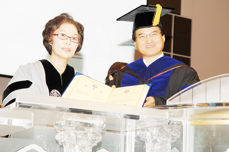°í½Å´ëÇб³´Â Áö³­ 16ÀÏ(¸ñ) ¿ÀÀü 10½Ã 30ºÐ ¿µµµÄ·ÆÛ½º À½¾Ç´ç¿¡¼­ 2006Çг⵵ Èıâ ÇÐÀ§¼ö¿©½ÄÀ» °¡Á³´Ù. ÇÐÀ§ ¼ö¿©¿¡ ¾Õ¼­ µå¸° ¿¹¹è¿¡¼­´Â ±Ç¿ÀÁ¤ ¸ñ»ç(°í½Å ÃÑȸÀå)°¡ ¡®¼±ÅÃÀÇ °¨°Ý¡¯À̶ó´Â Á¦¸ñÀ¸·Î ¸»¾¸À» ÀüÇßÀ¸¸ç, Á¤±ÙµÎ ¸ñ»ç(¿ï»ê±³È¸)°¡ Ã൵Çß´Ù. 2ºÎ ÇÐÀ§¼ö¿©½ÄÀº Áõ¼­¼ö¿©¿Í ±è¼º¼ö ÃÑÀåÀÇ ÈÆ»ç, ¸í¿¹¹Ú»çÇÐÀ§ ¼ö¿©, ·ÎÀú Æä·¹½º Çʸ®ÇÉ Ä«°¡¾á ÁÖ¸³´ë ÃÑÀå µîÀÇ Ãà»ç ¼øÀ¸·Î ÁøÇàµÆ´Ù. À̳¯ ¸í¿¹¹Ú»çÇÐÀ§¸¦ ¼ö¿©¹ÞÀº ±èÀÚ¼± ¼±±³»ç´Â °í½Å´ë ½ÅÇдëÇпøÀ» Á¹¾÷Çϰí 1986³â 10¿ù, °í½Å ÃÑȸ ÆÄ¼Û ¼±±³»ç·Î Çʸ®ÇÉ »ç¿ªÀ» ½ÃÀÛÇØ 20¿©³â°£ ¹ÌÀüµµ Á¾Á·Áö¿ªÀÇ ¿øÁֹΠ¼±±³ ¹× ÇöÁö ±³È¸ ÁöµµÀÚ ¾ç¼º¿¡ Çå½ÅÇÑ ¹Ù ÀÖ´Ù. °í½Å´ë´Â ¡°±èÀÚ¼± ¼±±³»çÀÇ »ý¸íÀ» °Å´Â º¹À½Àüµµ »ç¿ª°ú ´Ù¾çÇÑ Çб³ ¼³¸³À» ÅëÇÑ ±âµ¶±³ ±³À°½ÇõÀÇ °øÀûÀÌ ÀÎÁ¤µÅ ¸í¿¹¹Ú»çÇÐÀ§ ¼ö¿©¸¦ °áÁ¤Çß´Ù¡±°í ¹àÇû´Ù. ±è ¼±±³»ç´Â Áö³­ÇØ °í½Å´ëÇб³ °³±³60Áֳ⿡ ¡®ÀÚ¶û½º·¯¿î °í½ÅÀÎ »ó¡¯À» ¼ö»óÇϱ⵵ Çß´Ù. °í½Å´ë´Â À̹ø ÇÐÀ§¼ö¿©½ÄÀ» ÅëÇØ ¹Ú»ç 13¸í, ¼®»ç 85¸í, Çлç 76¸íÀ» ¹èÃâÇß´Ù.