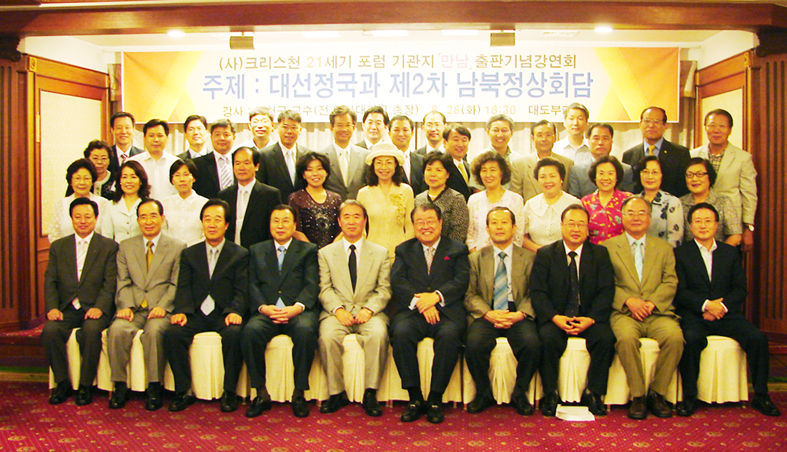 (»ç)Å©¸®½ºÃµ 21¼¼±â Æ÷·³(ÀÌ»çÀå À强¸¸ ¸ñ»ç) ±â°üÁö ¡®¸¸³²¡¯ÀÇ ÃâÆÇ ±â³äȸ°¡ Áö³­ 28ÀÏ ´ëµµºßÆä¿¡¼­ ¿­·È´Ù. À̳¯ ÃâÆÇ±â³äȸ¿¡¼­´Â À强¸¸ ÀÌ»çÀåÀÇ °³È¸Àλ翡 À̾î, ¡®´ë¼±Á¤±¹°ú Á¦2Â÷ ³²ºÏÀü»óȸ´ã¡¯À» ÁÖÁ¦·Î Á¤Ãµ±¸ ±³¼ö(Á¤Ä¡ÇÐ ¹Ú»ç, Àü ¿µ»ê´ëÇб³ ÃÑÀå)ÀÇ °­¿¬ÀÌ ÀÖ¾ú´Ù. Å©¸®½ºÂù 21¼¼±â Æ÷·³ ±â°üÁö ¡®¸¸³²¡¯Àº ³»¿ëÀÇ ´Ù¾ç¼ºÀ» À§ÇØ ±âÁ¸ Æ÷·³ ½ÇÀûÁ¤¸® ÀÌ¿Ü Á´ãȸ ±â·Ï ¹× Ä®·³, ÀÎÅÍºä µîÀ¸·Î ±¸¼ºµÇ¾úÀ¸¸ç, Æ÷·³°ú ½Ã¿Âȸ¿ø, ºñÀü100À§¿ø, ºÎ¿ï°æÁö¿ª ±âµ¶±³±â°ü ´Üü ¹× ±³È¸¿¡ ¹èÆ÷µÇ¾î Áø´Ù.