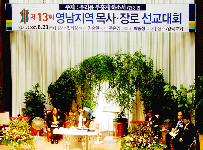 ÅëÇÕ ¿µ³²Áö¿ª ³ëȸÇùÀÇȸ(ȸÀå Á¤»ïµæ Àå·Î) ÁÖÃÖ Á¦13ȸ ¿µ³²Áö¿ª ¸ñ»ç¡¤Àå·Î ¼±±³´ëȸ°¡ Áö³­ 23ÀÏ Ã¢¿ø ¾ç°î±³È¸(Áö¿ë¼ö ¸ñ»ç)¿¡¼­ ¡®¿ì¸®¸¦ ºÎÈïÄÉ ÇϼҼ­¡¯¶ó´Â ÁÖÁ¦·Î ¿­·È´Ù. ¼ö¼® ºÎȸÀå °øº´ÀÇ ¸ñ»çÀÇ Àεµ·Î µå¸° °³È¸¿¹¹è¿¡¼­´Â ÁøÈñ¼º ¸ñ»ç(¿µ³²½ÅÇдëÇб³ ÃÑÀå)°¡ ¡®¼Õ¹ßÀ» ¸ÂÃ߾¶ó´Â Á¦¸ñÀ¸·Î ¸»¾¸À» ÀüÇßÀ¸¸ç, ÃÑȸ¿Í ¿µ³²ÇùÀÇȸ¸¦ À§ÇÏ¿©, ±¹°¡¿Í ¹ÎÁ·º¹À½È­¸¦ À§ÇÏ¿©, ¼¼°è¼±±³¿Í Çѱ¹±³È¸¸¦ À§ÇÏ¿©, ½ÅÇдëÇаú ±âµ¶±³ ±³À°Àç´ÜÀ» À§ÇÏ¿© Ưº°±âµµÇÏ´Â ½Ã°£À» °¡Á³´Ù. ÀüȸÀå ±èÃæ±Ç ¸ñ»çÀÇ Ã൵·Î °³È¸¿¹¹è¸¦ ¸¶Ä¡°í, Á¤»ïµæ Àå·ÎÀÇ ´ëȸ ¼±¾ðÀ¸·Î ¼±±³´ëȸ°¡ ½ÃÀ۵Ǿî Áõ°æÃÑȸÀå ±è¼ø±Ç ¸ñ»ç(°æÃµ±³È¸)ÀÇ ÁÖÁ¦ °­ÀÇ¿Í ÁÖ¼ø¿µ ¼±±³»çÀÇ °£ÁõÀÌ ÀÖ¾ú´Ù. À̹ø ¼±±³´ëȸ¿¡ Âü¿©ÇÑ ¿µ³²Áö¿ª 16°³ ³ëȸ ¸ñ»ç¡¤Àå·Î´Â ¼±±³´ëȸ¸¦ ÅëÇØ Æò¾ç ´ëºÎÈï 100ÁÖ³âÀ» ¸Â´Â ¿ÃÇØ, »õ·Î¿î ºÎÈïÀ» »ç¸ðÇÏ´Â ½Ã°£À» °¡Á³´Ù.