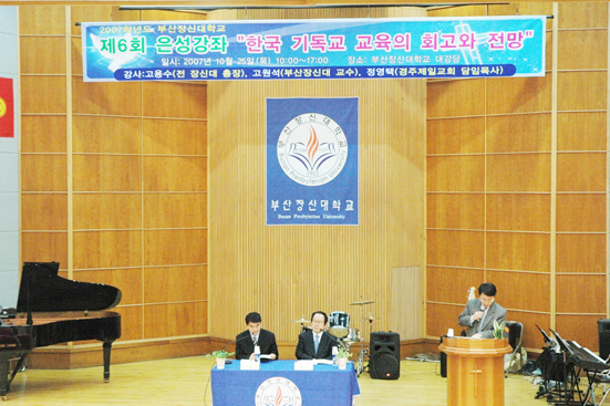 Áö³­ 25ÀÏ ºÎ»êÀå½Å´ëÇб³´Â Á¾±³°³ÇõÁÖ°£À» ±â³äÇØ ¡®Çѱ¹ ±âµ¶±³ ±³À°ÀÇ È¸°í¿Í Àü¸Á¡¯À» ÁÖÁ¦·Î Á¦6ȸ Àº¼º°­Á¸¦ °³ÃÖÇß´Ù. À̹ø ¼¼¹Ì³ª¿¡´Â Àü Àå½Å´ë ÃÑÀåÀÎ °í¿ë¼ö ¸ñ»ç¸¦ ºñ·ÔÇÑ ¿©·¯°­»çµéÀ» ÃÊûÇÏ¿© Çѱ¹ ±³È¸¿¡¼­ÀÇ ±âµ¶±³ ±³À° ¹æÇâ°ú ±³À°¸ñȸ, ÇâÈÄ Àü¸Á µî¿¡ ´ëÇÑ ÀǰßÀ» ±³È¯Çß´Ù. ÀºÀ²(È²ÇØµµ)°ú ±¤¼º(±³È¸)¿¡¼­ À¯·¡µÈ Àü ÃÑÀåÀÎ ±èâÀÎ ¸ñ»çÀÇ ¾ÆÈ£¸¦ µý ¡®Àº¼º°­Á¡¯´Â ¸Å³â Á¾±³°³ÇõÀ» ±â³äÇØ Á¾±³¡¤»çȸ¡¤½ÅÇÐÀü¹ÝÀÇ ÁÖ¿äÁÖÁ¦¸¦ °¡Áö°í ±¹³»¡¤¿Ü Àú¸íÇÑ ÇÐÀÚµéÀ» ÃÊûÇÏ¿© ÁøÇàÇϰí ÀÖ´Ù.
