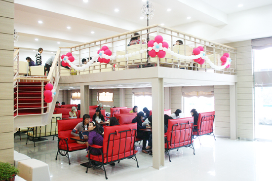 ÇѺû¶ó¿îÁö´Â ¾Æ±âÀÚ±âÇÏ°í ±Í¿©¿î ¼Òǰµé, Æí¾ÈÇÑ Å×À̺í°ú ÀÇÀÚ, ÀÛÀº ¿¬¸ø µî Ä«Æä ¸øÁö¾ÊÀº ÀÎÅ׸®¾î·Î ¸ÕÀú ½Ã¼±À» »ç·ÎÀâ´Â´Ù. 4Àοë Å×À̺í 30°³ ÃÑ 120Á¼®À¸·Î, ÇлýµéÀÇ ¸ðÀÓ °ø°£À¸·Îµµ ¼Õ»öÀÌ ¾øÀ¸¸ç, ºÏ Ä«Æä¿Í Å×ÀÌÅ©¾Æ¿ô Á¸µµ ÇÔ²² ¿î¿µÇØ Çʿ信 µû¶ó ´Ù¾çÇÏ°Ô ÀÌ¿ëÇÒ ¼ö ÀÖ¾î ÇлýµéÀÇ ¸¶À½±îÁö »ç·ÎÀâ°í ÀÖ´Ù.