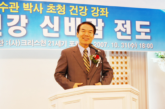 Å©¸®½ºÃµ21¼¼±âÆ÷·³ »êÇÏ ½Ã¿ÂŬ·´(ȸÀå ¾çÇѼ® Àå·Î)ÀÌ ÁÖÃÖÇÑ °Ç°­°­Á¿¡¼­ Àü±¹¿¡ ½Å¹Ù¶÷ ½Åµå·ÒÀ» ÀÏÀ¸Ä×´ø Ȳ¼ö°ü ¹Ú»ç(¿¬¼¼´ë Àǰú´ëÇÐ ¿Ü·¡±³¼ö, °­³²Áß¾Ó±³È¸ Àå·Î)°¡ ÁÂÁßÀ» ¿ô±â°í, ¿ï·È´Ù.