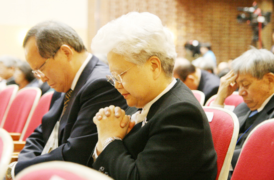 Âüȸ±âµµÈ¸ ¼ø¼­¸¦ ÅëÇØ À½µ¿¼º ¸ñ»ç(µ¿±³µ¿±³È¸)°¡ ¡®¿µÀû Áöµµ·Â ȸº¹À» À§ÇØ¡¯, ³ë¿ëÇÑ ¸ñ»ç(±¸·Îµ¿±³È¸)°¡ ¡®¸ñȸÀÚÀÇ ½Å¾Ó°ú À±¸®¿¡ ´ëÇØ¡¯, ±èöÇö ¸ñ»ç(¼º¾È±³È¸)°¡ ¡®±³È¸ÀÇ °»½ÅÀ» À§ÇØ¡¯, ÃÖ¿øÅ¹ ¸ñ»ç(Çö¾Ï±³È¸)°¡ ¡®°øµ¿Ã¼ÀÇ ¿ª»çÀû ÁË¿Í ¼¼¼ÓÈ­¿¡ ´ëÇØ¡¯, ÀÓ´ë½Ä ¸ñ»ç(ÆòÈ­±³È¸)°¡ ¡®³ª¶ó¿Í ¹ÎÁ·À» À§ÇØ¡¯ ±âµµÇßÀ¸¸ç, Âüȸ¼±¾ð¹®À» ¹ßÇ¥Çß´Ù. Âüȸ¼±¾ð¹®¿¡´Â ¡°Çϳª´Ô°ú ¹ÎÁ· ¾Õ¿¡¼­ ºÎ²ô·¯¿òÀ» °¡Áö°í Áö³ª¿Â ³¯µéÀ» ÂüȸÇÑ´Ù¡°¸ç ½Å»çÂü¹èÀÇ À߸øÀ» ÃÑȸÀÇ ÇàÁ¤ÀûÀÎ °áÀǷθ¸ ¹«¸¶ÇÑ Á¡, ±âº¹ÁÖÀÇ¿¡ Æí½ÂÇØ ´ëÁ¢¹Þ´Âµ¥ Ç÷¾ÈÀÌ µÅ¿Ô´ø ¸ð½À µîÀ» ¹Ý¼ºÇÏ¸ç ¼¼»óÀÇ ºû°ú ¼Ò±ÝÀ¸·Î »çȸÀÇ Ã¥ÀÓ ÀÖ´Â ÀÏ¿øÀÌ µÉ °ÍÀ» ´ÙÁüÇß´Ù.