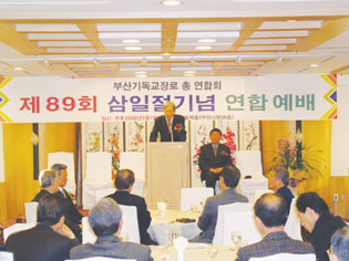 ºÎ»ê±âµ¶±³Àå·ÎÃÑ¿¬ÇÕȸ(´ëǥȸÀå ¾ç¿ø Àå·Î, ÀÌÇÏ ºÎ±âÀåÃÑ)´Â 3¿ù 1ÀÏ(Åä) ¿ÀÀü 7½Ã ºÎ»ê½Ãû µ¿¹éȦ¿¡¼ Á¦89ȸ 3.1ÀýÀ» ¸Â¾Æ ¡®»ïÀÏÀý±â³ä¿¬ÇÕ¿¹¹è¡¯¸¦ µå¸®°í 3¡¤1ÀýÀÇ ¼þ°íÇÑ Á¤½ÅÀ» »ó±âÇß´Ù. ¾ç¿ø Àå·ÎÀÇ »çȸ·Î ÁøÇàµÈ ¿¹¹è¿¡¼ ±³½ÃÇù ´ëǥȸÀåÀÎ Á¶¿µÈ£ ¸ñ»ç°¡ ¡®ÂüµÈ ÀÚÀ¯¡¯ Á¦¸ñÀ¸·Î ¡°°¨¿Á ¾È¿¡¼µµ º¹À½À» ÀüÇÑ ¹Ù¿ïÀÇ ¼ø±³ÀÚÀû ½Å¾ÓÀÇ ±æÀ» °É¾î°¥ ¶§ Çϳª´Ô ¾È¿¡¼ ÁøÁ¤ÇÑ ÀÚÀ¯¸¦ ´©¸± ¼ö ÀÖ´Ù. ±×¸®°í ±× ÀÚÀ¯´Â Çϳª´Ô »ç¶û ¾È¿¡ Á¸ÀçÇÒ ¶§ ´õ¿í °í±ÍÇϱ⿡ ¿ª°æ ¼Ó¿¡¼µµ ´ÉÈ÷ °¨´çÇÒ ¼ö ÀÖ´Â Èû°ú ¿ë±â¸¦ Á¦°øÇÑ´Ù¡±¸ç ¸»¾¸À» ÀüÇß´Ù. ÀÌ¾î ¹ú¾îÁø Ưº°±âµµÈ¸¿¡¼ ¡®±¹°¡¿Í ¹ÎÁ·, ºÎ»ê½Ã¸¦ À§ÇØ¡¯, ¡®Çѱ¹±³È¸ÀÇ ºÎÈï°ú ¼ºÀåÀ» À§ÇØ¡¯, ¡®ºÎ±âÀåÃÑÀÇ ¿ªÇÒ°ú Ȱµ¿À» À§ÇØ¡¯ µîÀÇ ±âµµÁ¦¸ñÀ¸·Î °øµ¿È¸ÀåÀÎ °ø»óÈ£ Àå·Î, ±Ç¿µ°Ç Àå·Î, ¿À¼ø°Ç Àå·Î°¡ °¢°¢ ±âµµÇß´Ù. ±×¸®°í ±è»ó±Ç Àå·ÎÀÇ µ¶¸³¼±¾ð¹® ³¶µ¶ ÈÄ Âü¼®ÇÑ 80¿© ¸íÀÇ Àå·Î´Â ÇÑ ¸ñ¼Ò¸®·Î ¸¸¼¼»ïâÀ» ¿ÜÃÆÀ¸¸ç, Â÷±â´ëǥȸÀå ±èÁÖ°Ç Àå·Î°¡ ¡®»ç½Å¿ì»óÀ» ¹ö¸®°í Çϳª´ÔÀ» µÎ·Á¿öÇÏ´Â »î ¿µÀ§¡¯, ¡®¿ª»çÀÇ ¼ø°£°ú °íºñ¸¶´Ù Çϳª´ÔÀÌ Á÷Á¢ °£¼·ÇÏ°í ±¸¿øÇϽɡ¯, ¡®Çѱ¹±³È¸ÀÇ ´ëºÎÈïÀÌ ºÎ»ê¿¡¼ºÎÅÍ Àü°³µÉ °ÍÀ» ¼Ò¸Á¡¯ µîÀÇ 3¡¤1Àý¿¡ ÁîÀ½ÇÑ ¼º¸í¼¸¦ ³¶µ¶Çß´Ù. ¾ç¿ø Àå·Î´Â ¡°ÀϺ»½Ä¹ÎÅëÄ¡¿¡¼ ÇØ¹æ½ÃŰ½Å Çϳª´Ô²² °¨»çµå¸°´Ù. 3¡¤1Àý ¼þ°íÇÑ Á¤½ÅÀ» ½Å¾Ó¿îµ¿À¸·Î °è½ÂÇÒ °ÍÀ» ´ÙÁüÇÏ¸ç ³ª¶ó¿Í ¹ÎÁ·À» À§ÇØ ²÷ÀÓ¾øÀÌ ±âµµÇÒ °Í¡±À̶ó¸ç À̳¯ Çà»çÀÇ ¿äÁö¸¦ ÀüÇß´Ù.